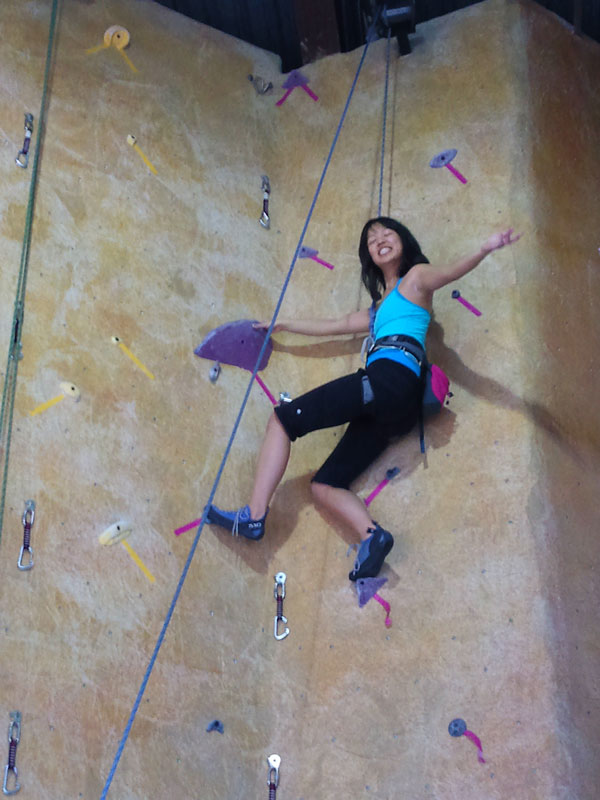 Karen! You’re an AWESOME CLIMBER! Next time you’re doing the 5.7 and 5.8 routes! You can totally do it! Hehe.. and when you “bounce” down, you are rapelling down. Can’t wait to do this with you again!