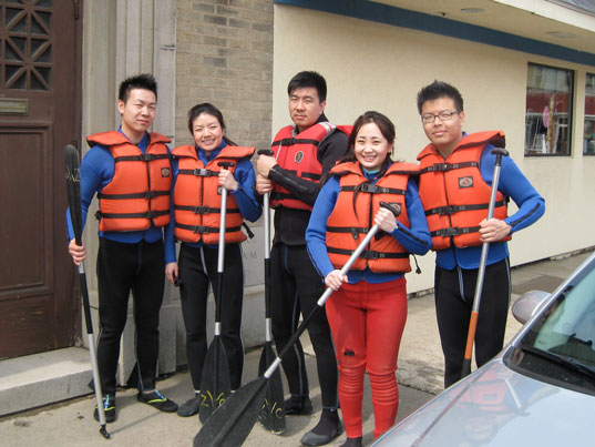 We drove up saturday early at 6:30am and arrived there at 10:00am (no traffic or delay at the border!). We all dressed up in our wetsuits and life jackets. I over-dressed thinking it will be freezing but somehow and luckily the sun came out and it went up to 20 degrees!