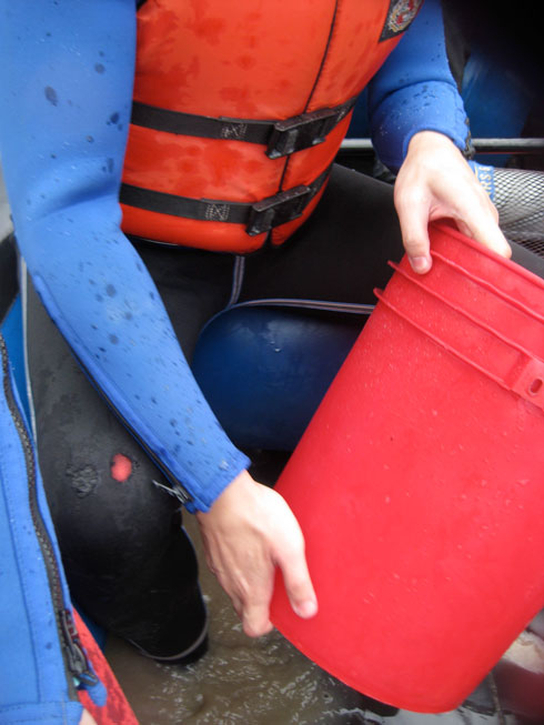 We hit two rapids area. The first one was longer about 5 minutes and it was exciting. No one fell off but we did get WET. The boat also started to fill up with the water and Chris would designated to pour it out with a bucket.