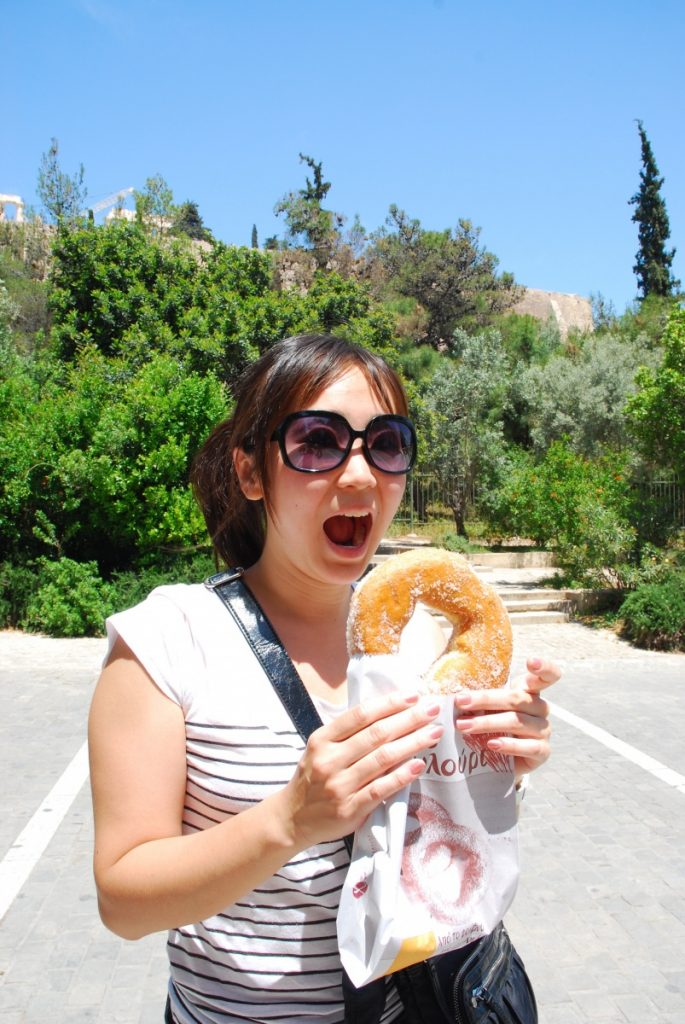 We walked around Acropolis and picked up some free coke light and a gigantic Greek donut, which tasted similar to a regular donut but coated in sugar.