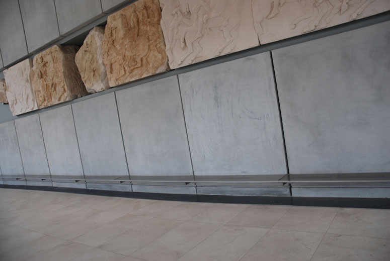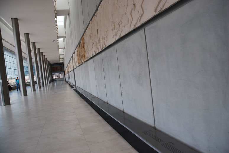 The marble slabs on the third level were impressive as these were the sculpted slabs on sides of the Parthenon. The museum was built to hold these pieces to mimic their position in the Parthenon. Very fascinating! Did you know, the Parthenon was originally had color?