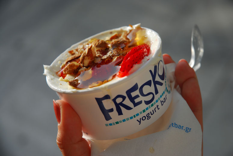 After the museum, we picked up some traditional greek yogurt at a yogurt bar. This was not the same as a fro-yo place as it was cold yogurt but with many toppings. I went with fresh strawberries, honey and almonds. It was very smooth and yummy!