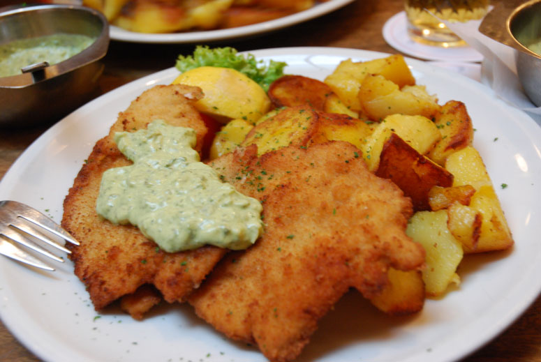 The shop keeper was really sweet and recommend a nice german dinner place nearby. I tried this Frankfurt green sauce made from sour cream and herbs on Schnizel with potatos. It was also very good!