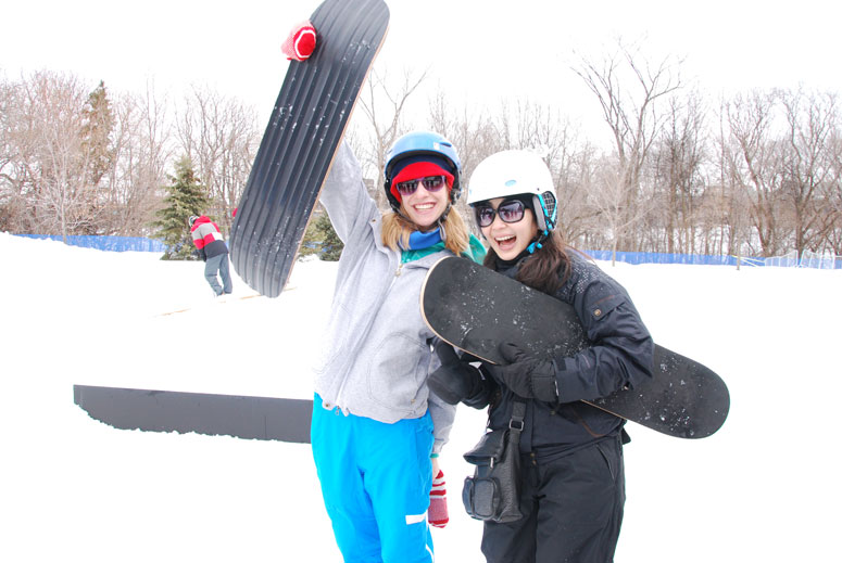 The ice slides were the best! They were slippery and steep. You could go as a group or on the singles. Both of them were equally fun. Sabrina was determined to try snow skating so I decided to do it with her. It was tough! Very different from snowboarding. I wasn’t confident enough to go on the ramps… Not falling was tough enough.
