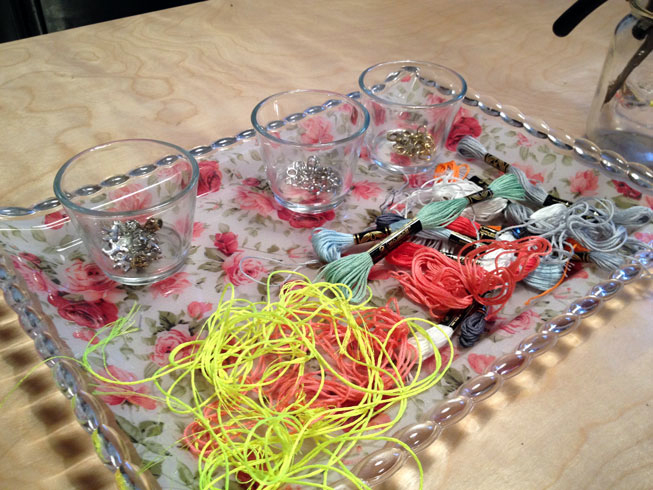 There are a few workshop options you can pick to take such as necklaces, a clock and stationery but we signed up to make the thread wrapped bracelets.