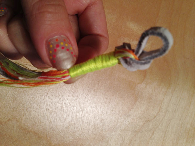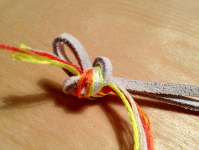 It was fairly easy and Renee, the teacher was helpful. You basically measure the thread, tie a starter knot and just wrap away! At the end, you add the hardware. Just be careful when you measure to leave A LOT of thread… most of us ran out of thread and had to connect it with new thread.