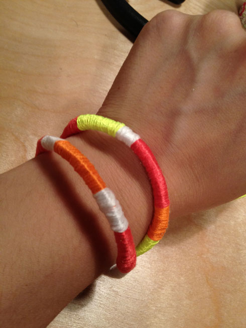 Ta da! My final bracelet turned out quite well. I wanted more neon yellow but that color ran out on me and I couldn’t connect it again. Oh well.