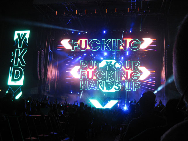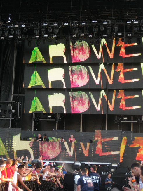 David Guetta was starting and we wanted to see him. Lots of people don’t like him and think he is a sell out but whatever I like him! His tunes are catchy and I wanted to see how he is live.