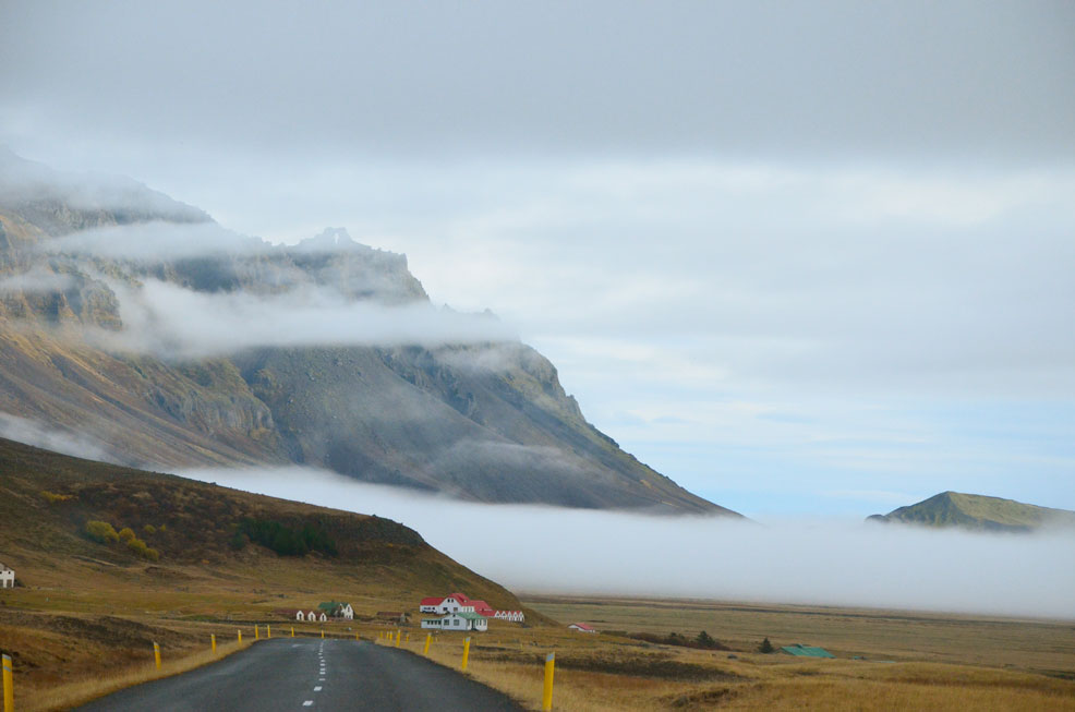 Boy was it foggy this morning! I swear we could only see about 3 meters ahead of us. We all really hoped the fog and rain would disappear because we had enough yesterday and we have big plans for today. As we drove, we started to see more and more further… Soon after the sun peaked out! We were ecstatic and got to some nice views along the way, cliffs, mountains and waterfalls. We rushed to Skaftafell National Park, where we booked a 10am Glacier hike. Unfortunately, we were 5 minutes late and they left without us! Booooo, we called the booking office and reschedule it for 2pm. So with 4 hours to kill, we went to Jökulsárlón, a famous glacier lagoon (where we were gonna go after the hike). Driving along, we hit a wall of fog! It was extremely foggy and cloudy again when we got to the lagoon. We were very disappointed as this was one of the best sights in Iceland. We decided to back track and come back tomorrow in hopes for better weather. Luckily, it worked with our plans for tomorrow.