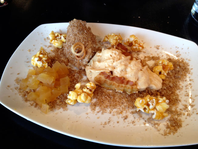 On Saturday, we went to enjoy lunch at Stone Road Grill. I had a pastrami benedict which was an interesting combination. They have a crazy bacon dessert called “The Barnyard” (Smoked Maple Bacon Ice Cream, Bacon Trough, Caramel Mousse, Cinnamon Sugar Crackling and Bacon Caramel Corn)… to wild and sweet for my taste buds. However, it is a great place to eat in Niagara.