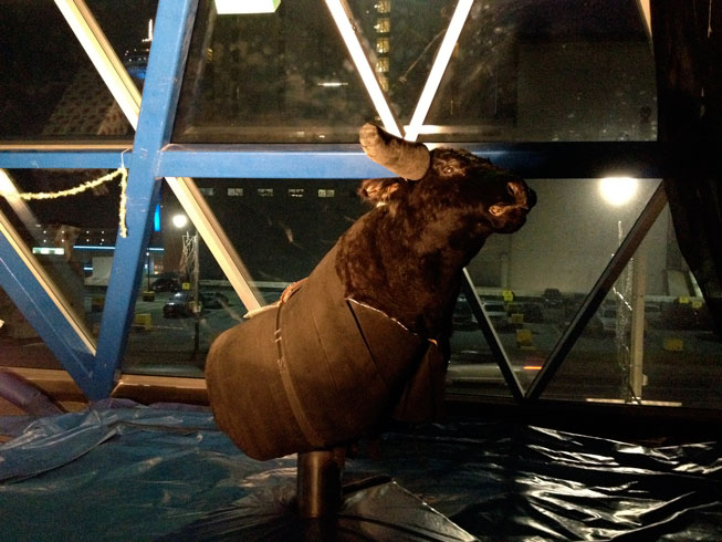 The bull ride was crazy! You basically ride until you fall off into the inflated cushion. It gets harder and harder as you stay on. Pretty fun but I was getting scared that I’d fall off and break another finger.