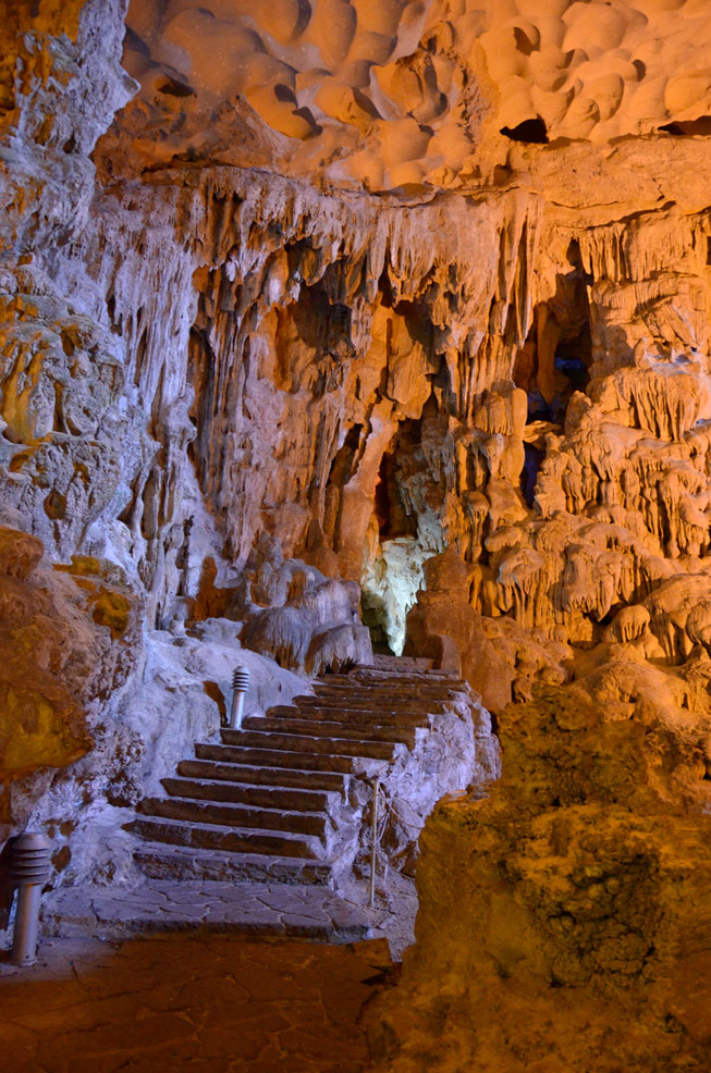 I watched the hills light up and glow under the warm sun. I only wish we had this perfect weather the past two days but at least I got to see Ha Long Bay in different climates. We ate a light breakfast and took a smaller boat to Hang Sot Cave “Surprise Cave”. This cave was unlike anything I’ve every seen before. It was hidden up in the hills (over 100 steps) and was very spacious. It made me want to go cave exploring in the newly discovered largest cave in Vietnam.