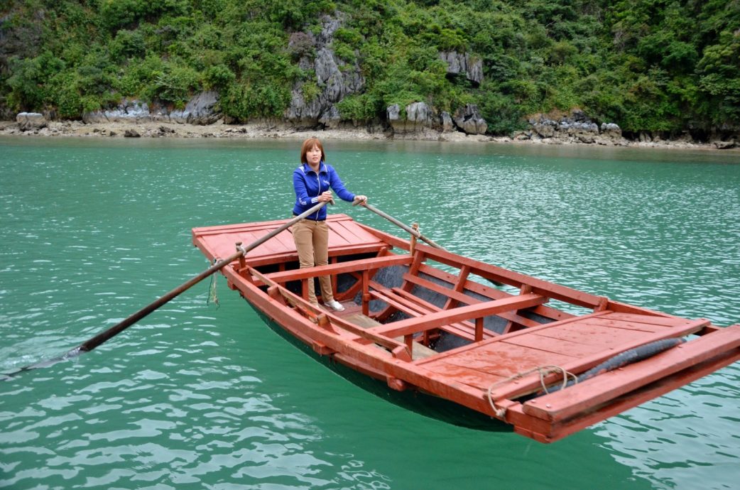 Our second stop was to see a local fishing village via a small wooden rowboat. This village was very interesting and eye opening to see how people lived on the waters in Ha Long Bay. Apparently, it only costs $5 a month to live out here. They have a floating school, community area that they use for weddings and temple in the hill. This is the only spot in the bay that never gets affected by typhoons.