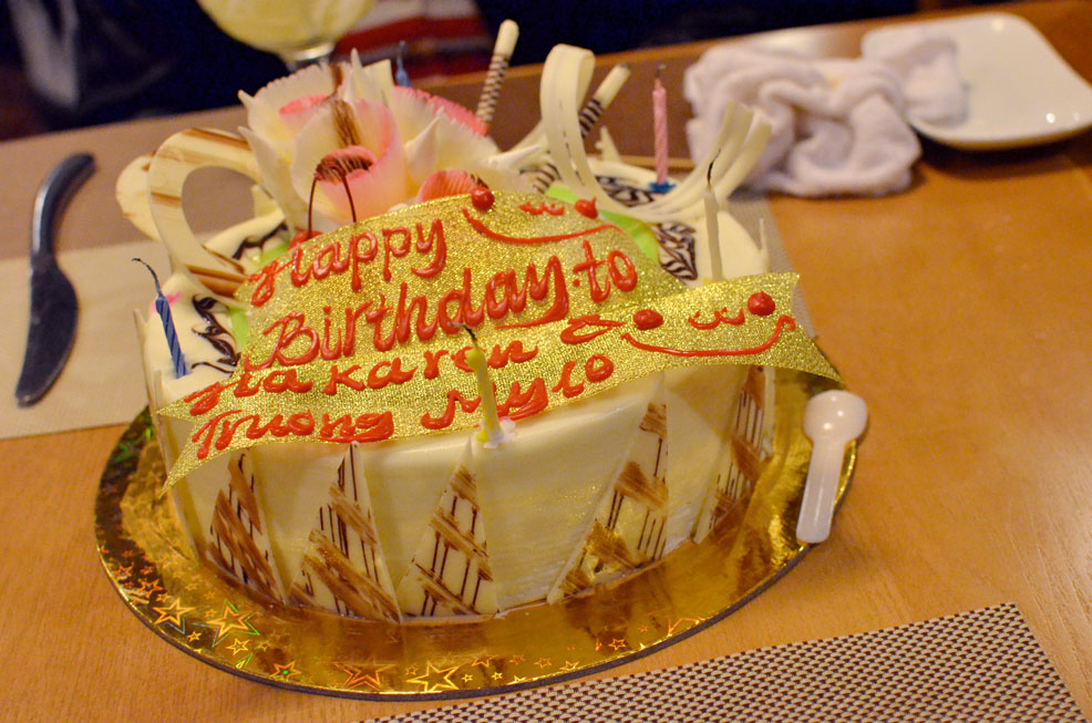 We went back to the cruise to watched a cooking demonstration on how to make spring rolls and have dinner. Today is also my 27th birthday. I shared my birthday with Aunt Mylo. The cruise provided us with a cake to share and it was quite tasty and light.