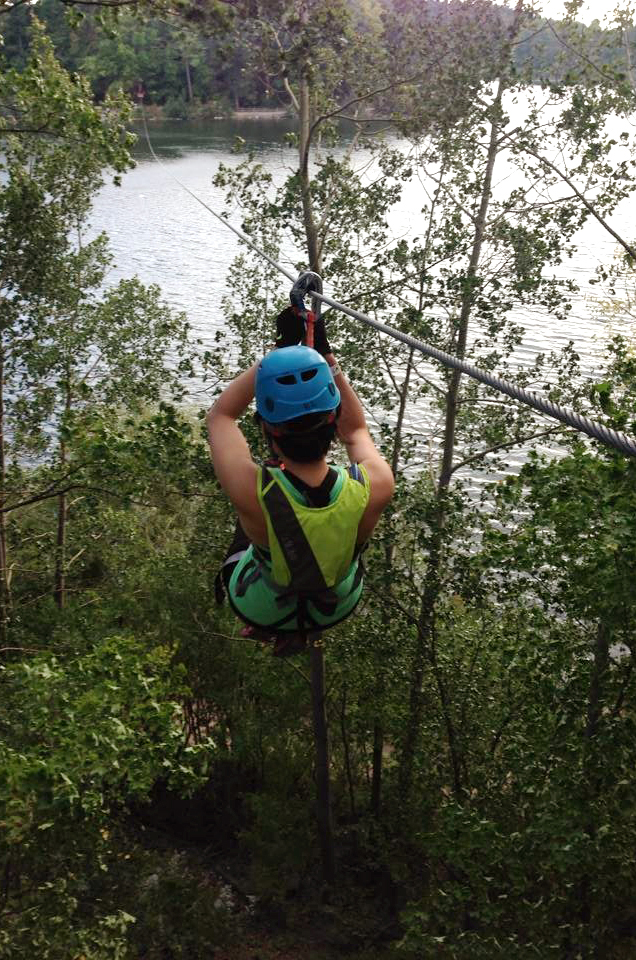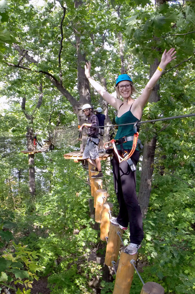We started with a quick orientation and then moved onto the beginner aerial courses. Each course comprised of platforms, “games” (tightropes, swings, etc.) and at least one zipline between trees.