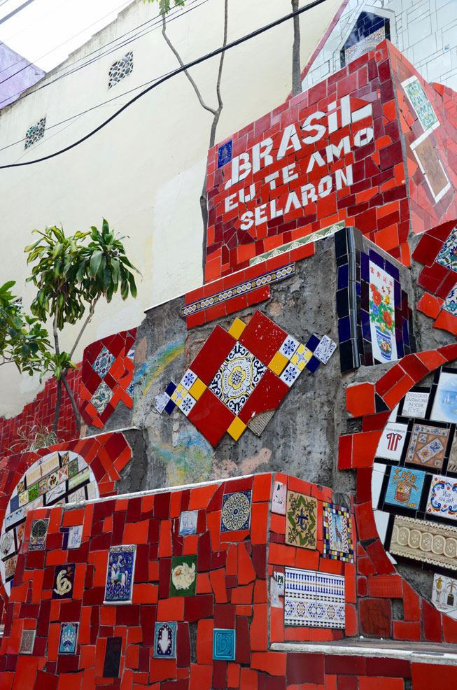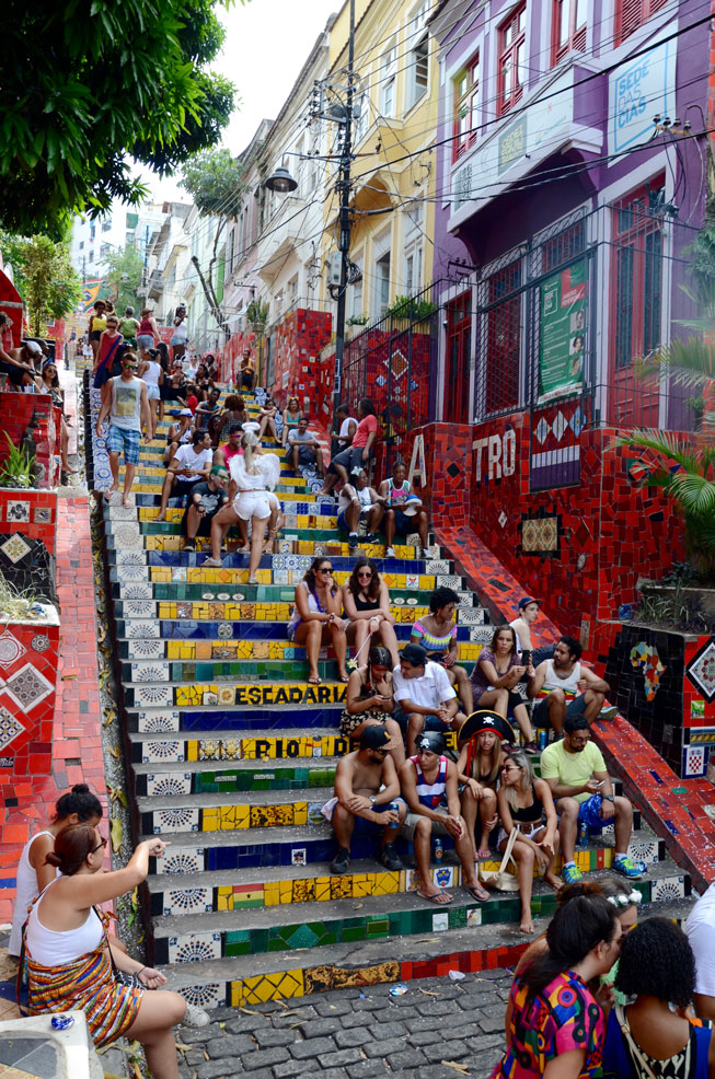 We went to the Escadaria Selarón, the Chilean steps in the Lapa area. Lapa was old and smelly with bums lying around on the street. But the party atmosphere was intense here. It was quite rowdy and probably not safe. The steps were way more interesting than I expected. They photographed really well and there was artwork on different tiles.