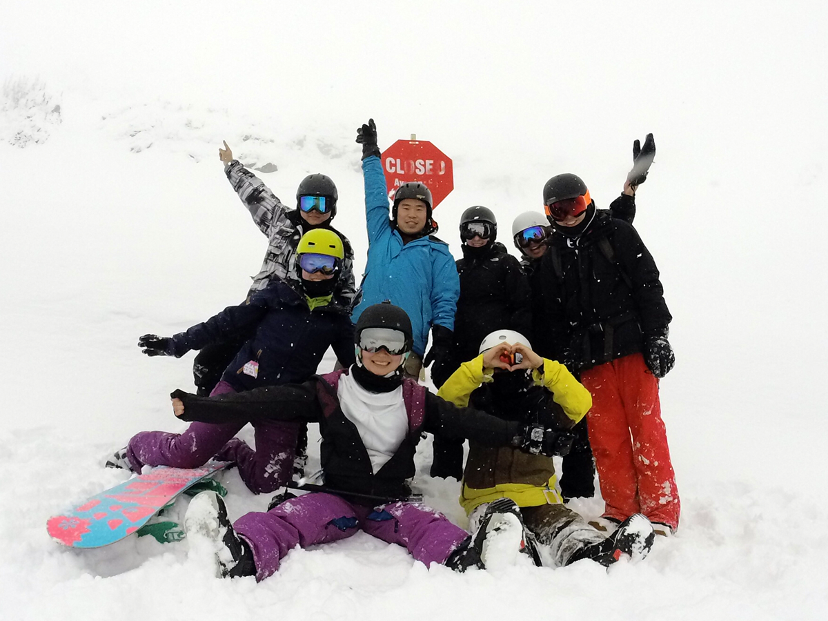 The east-coasters teased me since I complained about “too much powder” one day out west and in comparison they barely had any snow in Ontario. But joke’s on them, they finally knew what I meant when they kept falling on this soft yet packed deep powder run and struggled to get out. It wasn’t that fluffy but they understood how challenging snowboarding on too much powder is and how it’s like quicksand trying to get up. Too much powder became an ongoing joke as the trip went on.