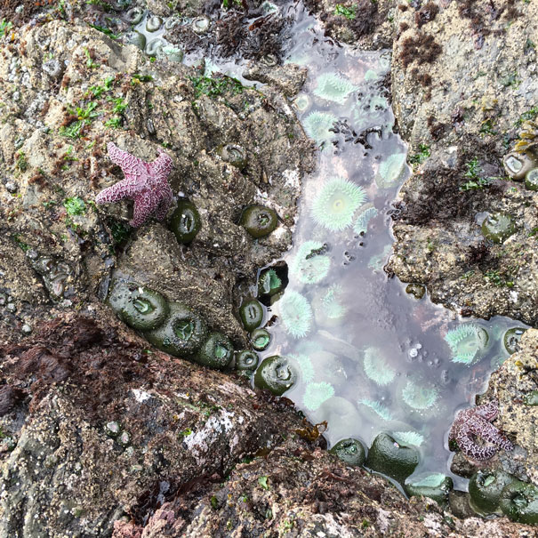 After a well-needed nap, our group explored the beach and climb upon a gigantic rock to see the entire beach. We also explored the nearby tide pools which were filled with anemones, mussels and starfish.