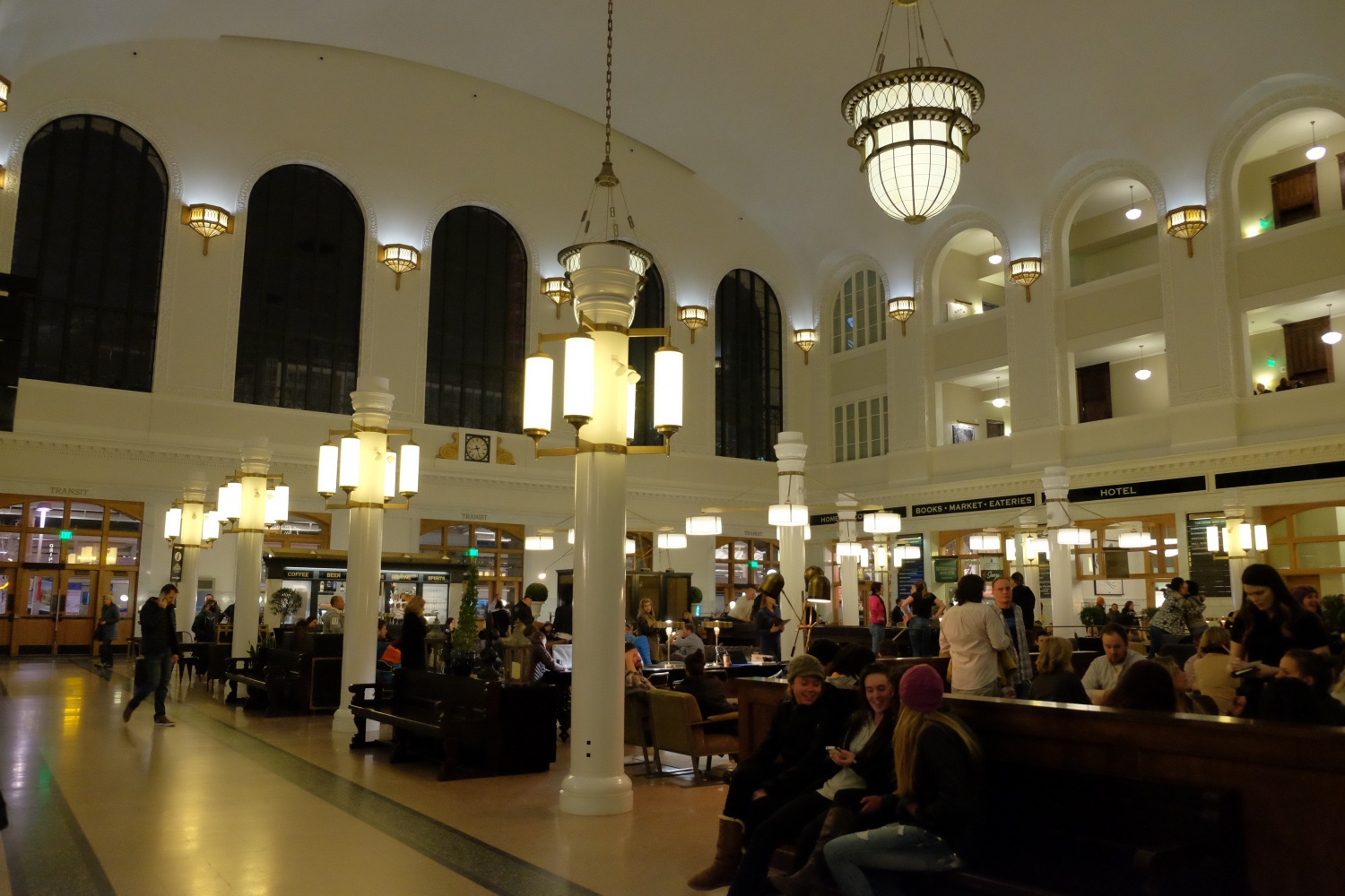 We headed back to the hotel to dropped off some shopping bags and pizza leftovers and took the free mall bus to Union Station. We expected to see a deserted station but was surprised to see a lively crowd and beautiful common space inside. It had a full-service bar, a quick cafe, shuffleboard tables, an unique coffee and ice cream shop, a florist and a hotel. It was the hippest train station I’ve every visited.