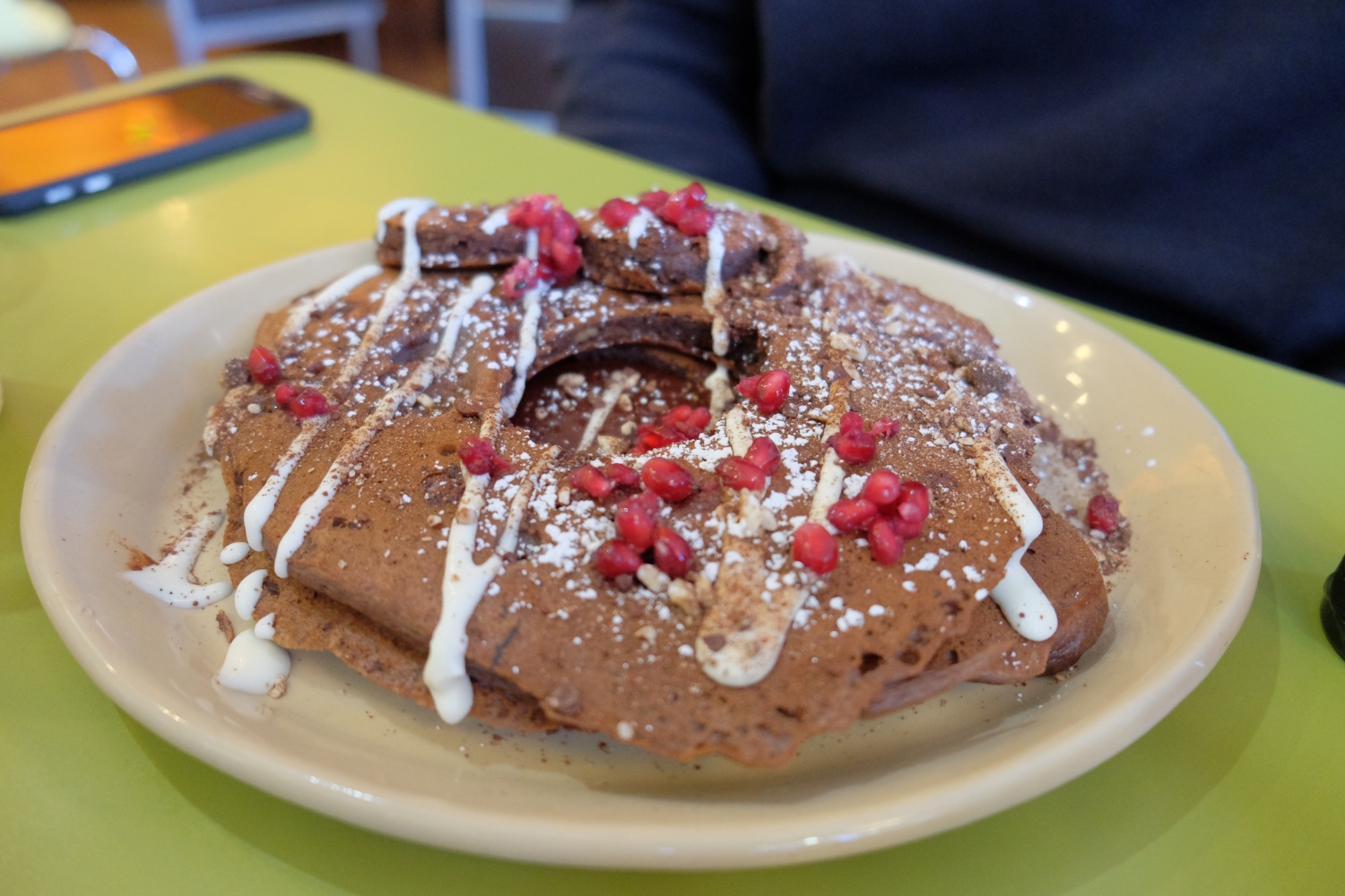 We checked out of our hotel and grabbed breakfast at the popular local spot called Snooze AM. It was good and I’d go back but it wasn’t must-try breakfast spot. My flakey breakfast pot pie was unique but I later read the upside-down pineapple pancake is the must-try. However, I tried Sameer’s molten-chocolate pancakes and wasn’t that impressed either.