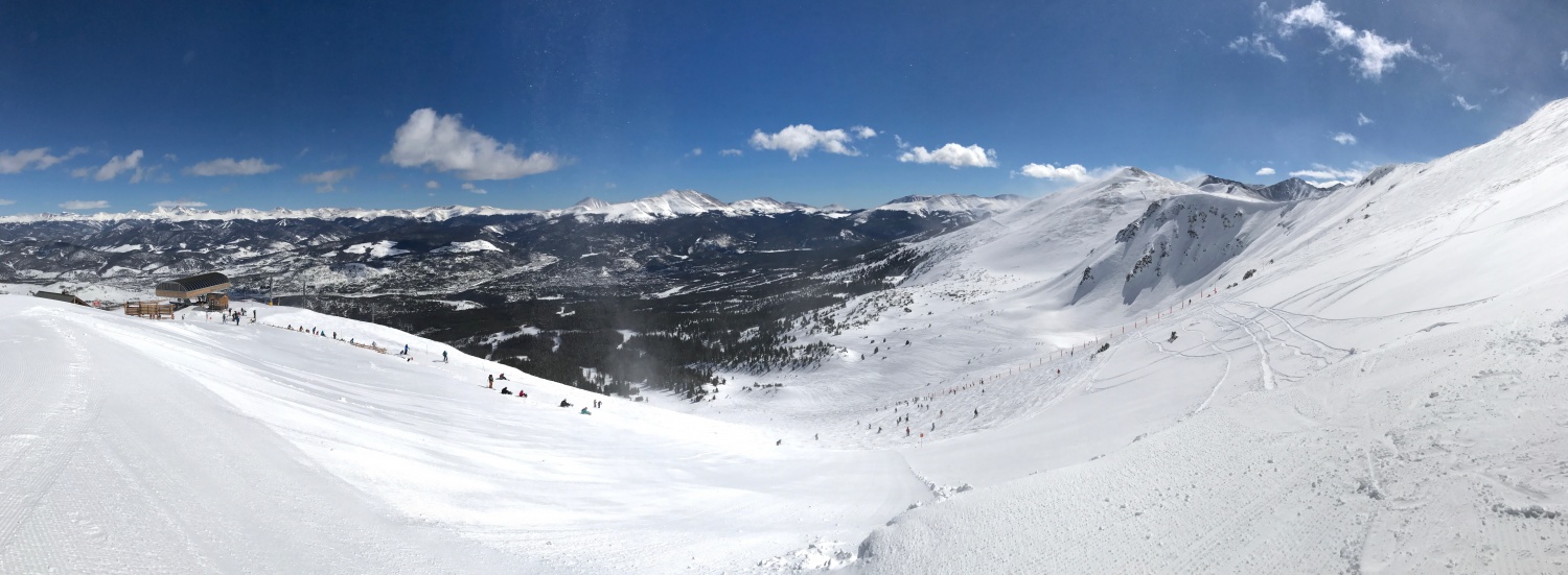 We were a little tired from the altitude (9,600 ft above sea level) but we were eager to board. We walked to the Quicksilver lift nearby and started our day with the Upper Lehman run on Peak 9. We made our way to Peak 10 for some black diamonds (pretty easy compared to standard ratings) and ended the day with a run on Peak 8. It was a good first day with blue skies and decent snow.
