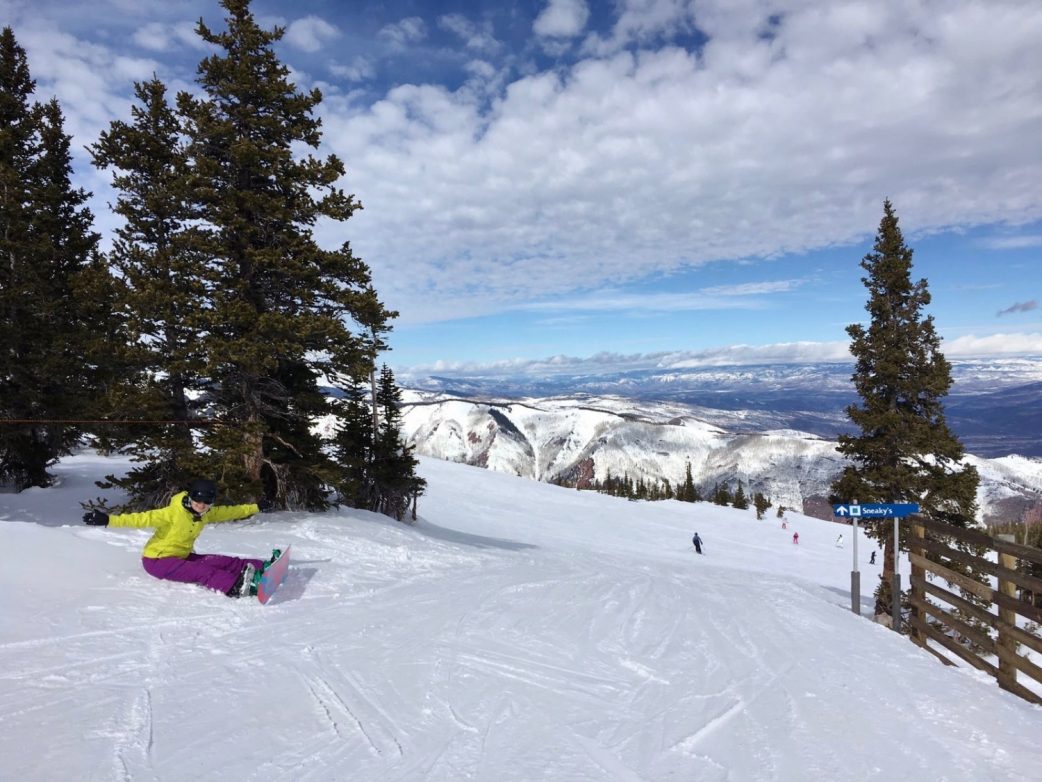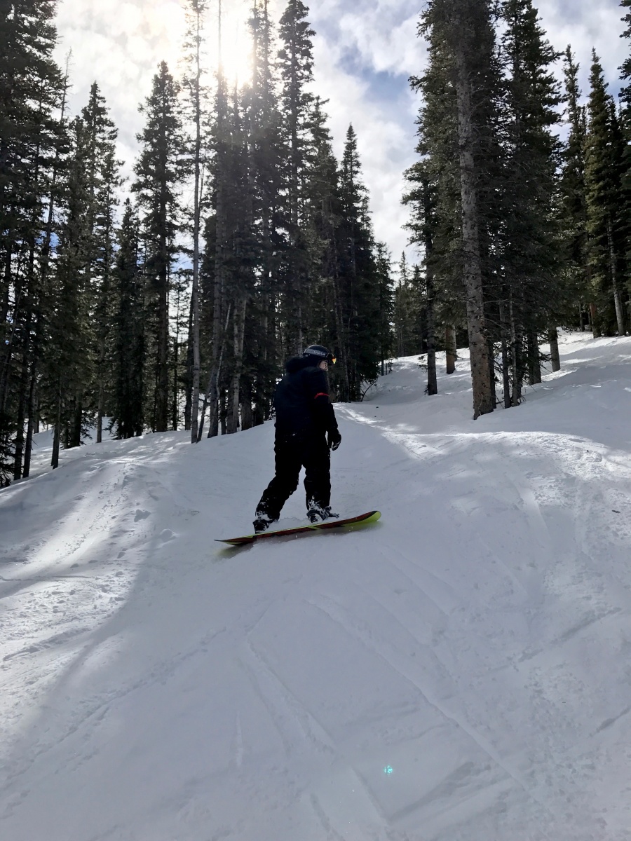 You could see Snowmass Mountain on the left as you board down Sneaky’s which was quite nice. We had lunch at Gwyn’s High Alpine lodge and finished the day in the Elk Camp area.