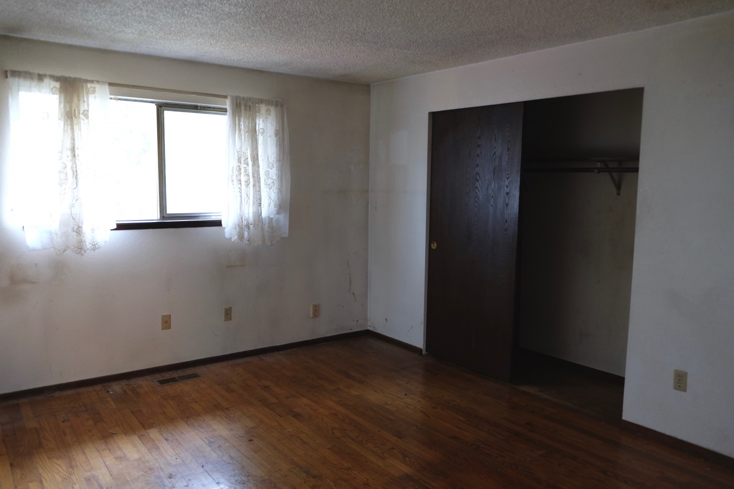 The three bedrooms are all good-sized including a large master and a ensuite bathroom. The walls were covered in cobwebs and dirt. I can’t wait to sand it off.