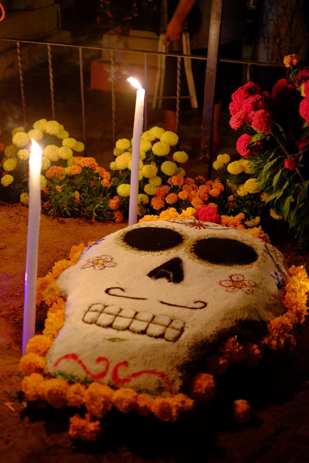 People were dressed up, there was live music, street processions, altars (ofrendas), sand art and a lot of decorations everywhere you go.
