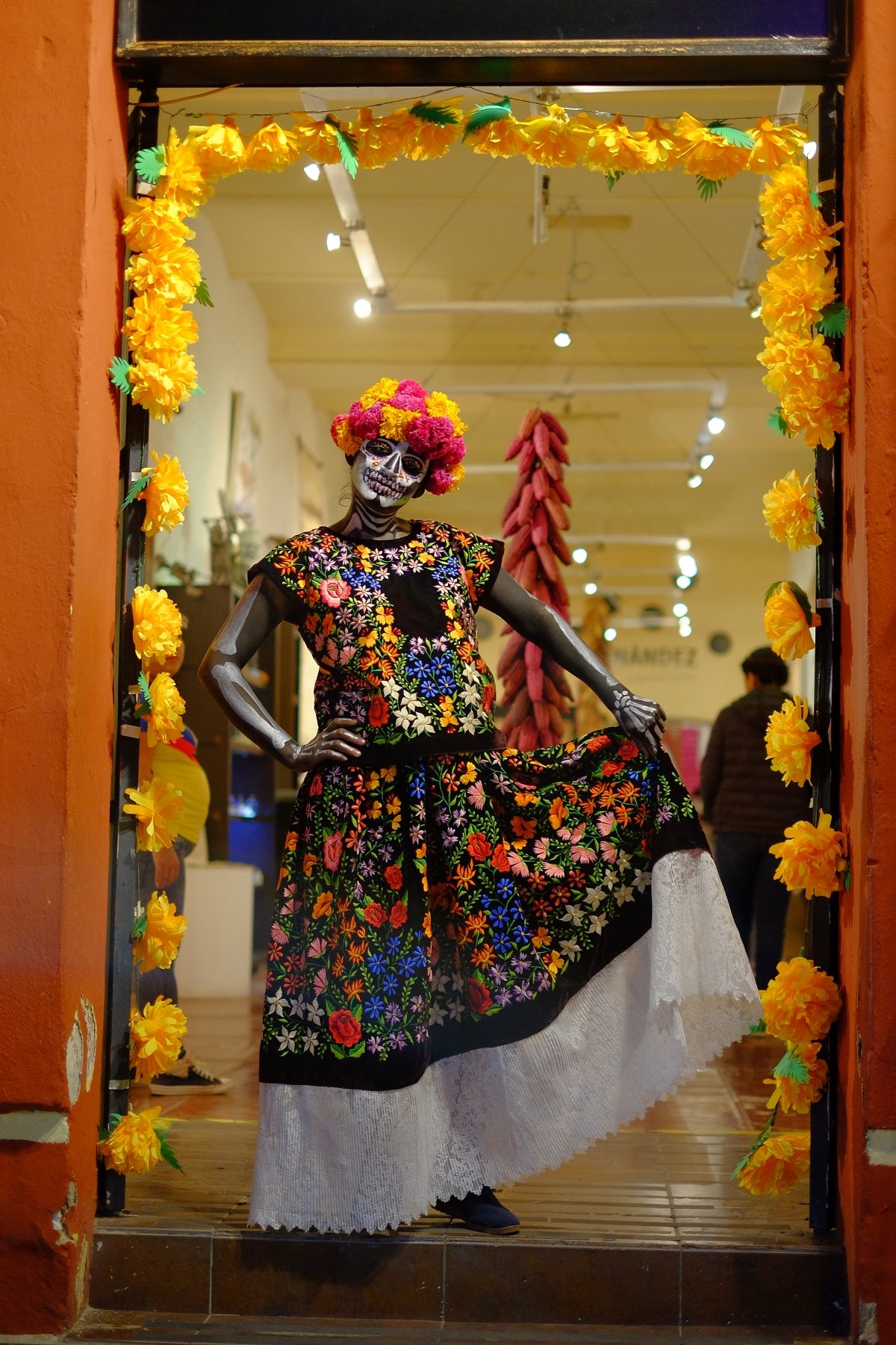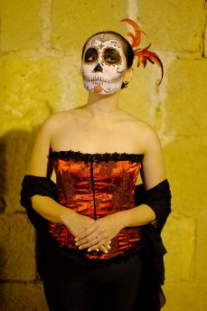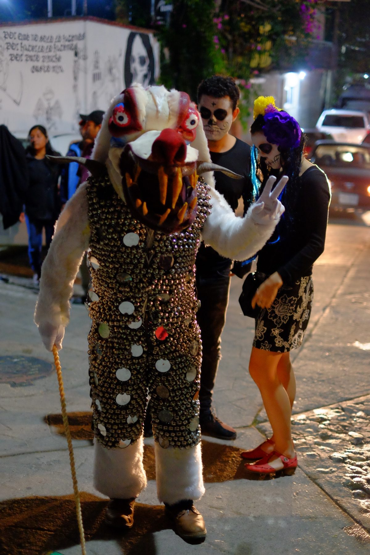 Of course, we had to get into the Halloween Day of the Dead spirit and dress up ourselves. We paid street artists to do our faces for about $7. Chi thought people would go wild over our costumes but we were clearly underdressed compared to the locals.