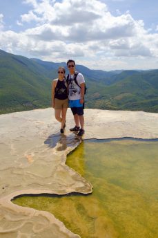 Hierve el Aguas was beautiful but crowded with tourists (we were spoiled with how quiet Grutas Tolantongo was). The view from the top overlooked layers of surrounding mountains. Down below you can see the petrified detail of the waterfall. Hiking and swimming the pools was a nice day trip from Oaxaca.