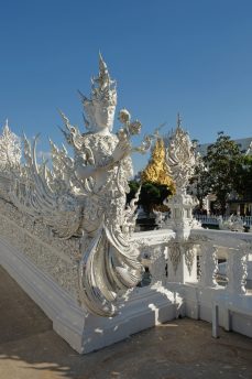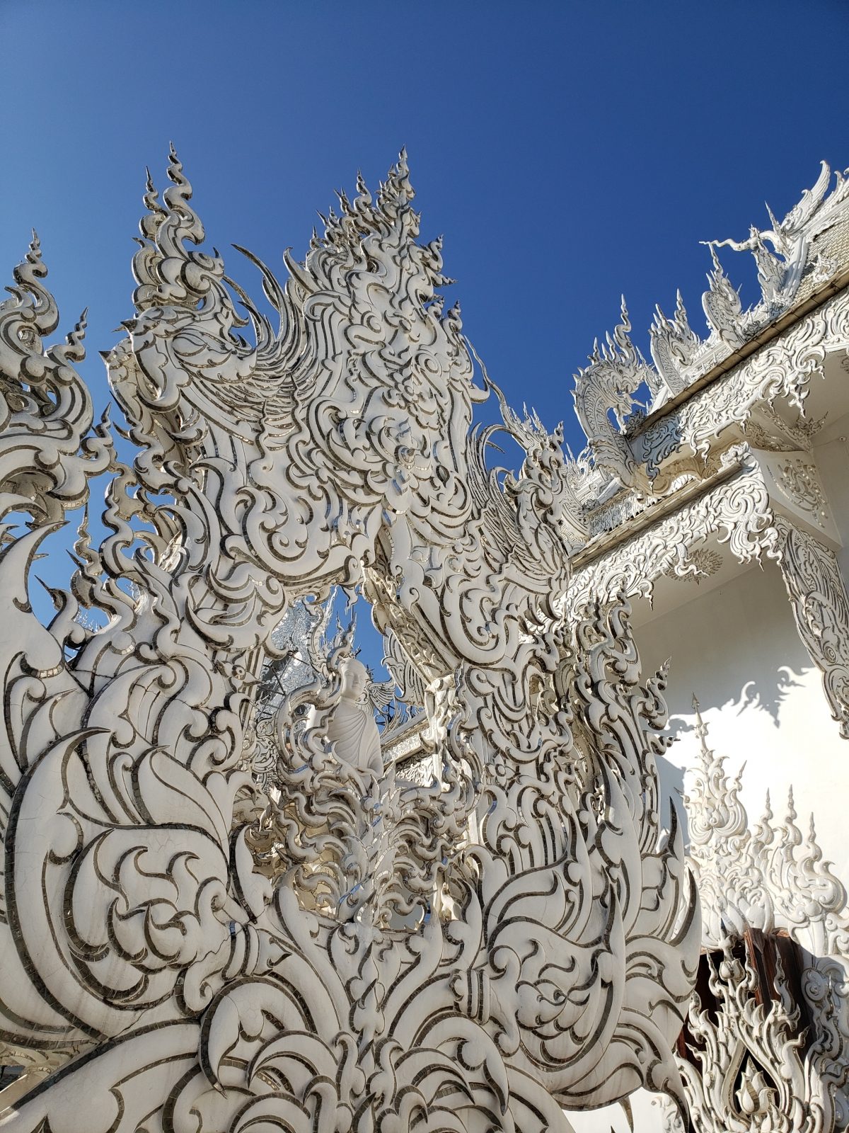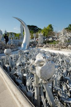 Wat Rong Khun, the white temple was our next stop and this was the main sight of Chiang Rai. The fascinating fact of this temple was that it isn’t a true temple but an art exhibit styled like a temple by Chalermchai Kositpipat.