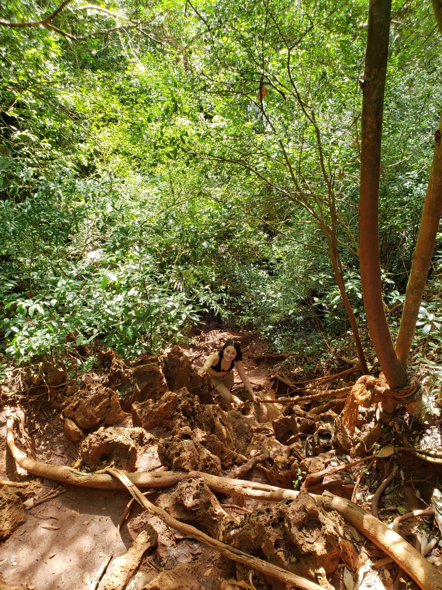 We questioned whether to keep venturing forward to locate the lagoon. We wander with three other travelers and went deeper down beyond a couple of warning signs. This was very muddy and much harder than accessing the viewpoint. We saw a small glimpse of the lagoon until it was too challenging to go further. It was pure bouldering and rock climbing at that point and I didn’t feel confident enough to get back up. It was quite the adventure.
