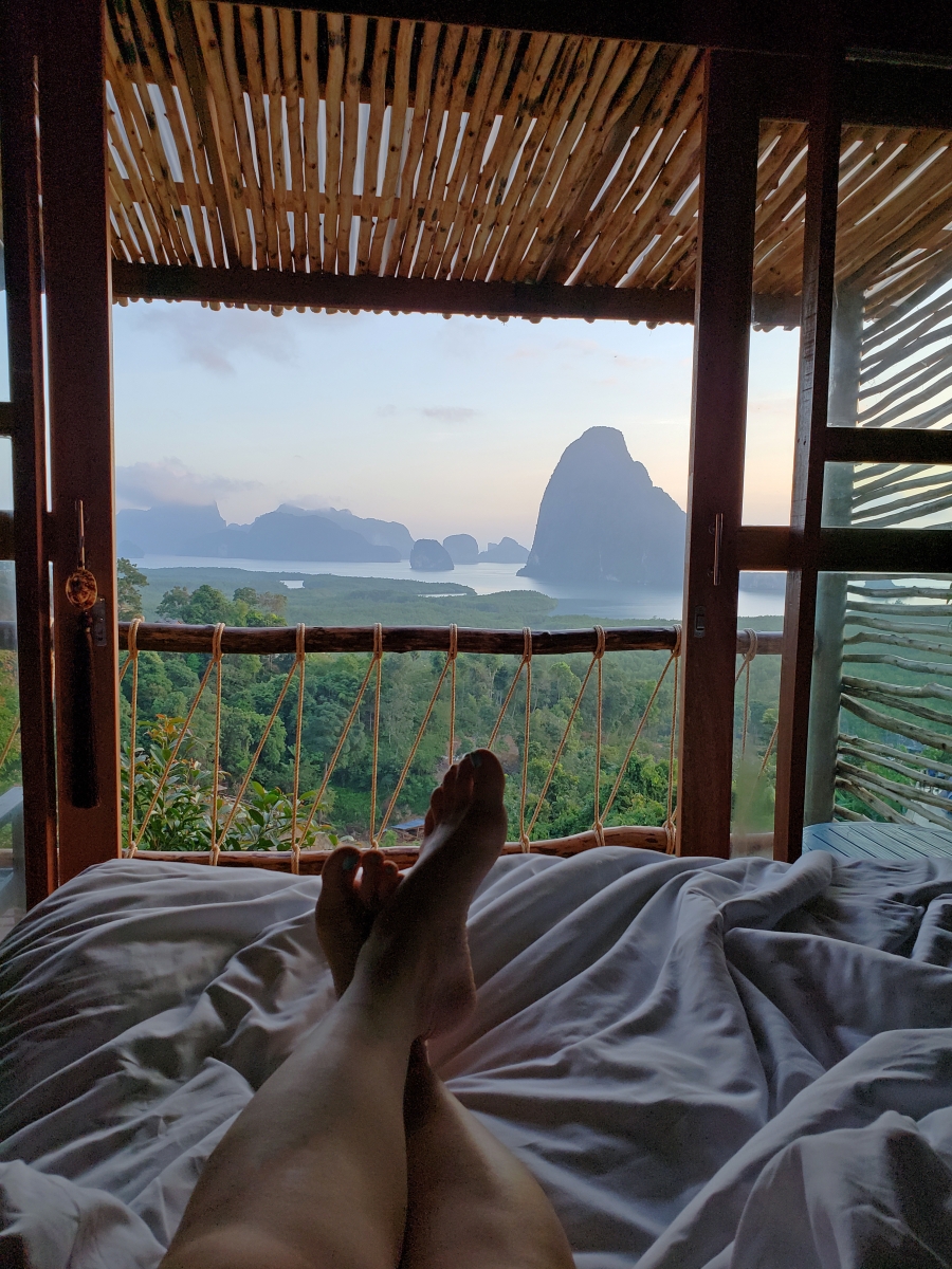 Our driver picked us up from the pier and drove us to Samet Nangshe, where we would spent the night. My friends recommended seeing the sunrise here and after seeing photos I had to go. Little did I know, it was off the usual travel path and most of the people who visited were local. We stayed at the only hotel in the area, ‘Samet Nangshe Boutique’ and got an upgraded room with the best balcony view.