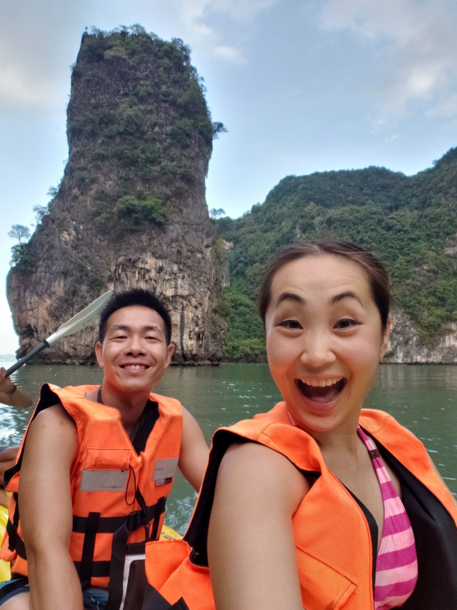 From there, we took the highly rated John Gray Sea Canoe Tour to see the popular islands of Phang Nga Bay. It was more popular than I expected… This tour group had at least two boats filled with 60 people each! And so, I’m not sure I’d recommend even though it was fun and the views were beautiful. I was spoiled with small groups and local secret spots!