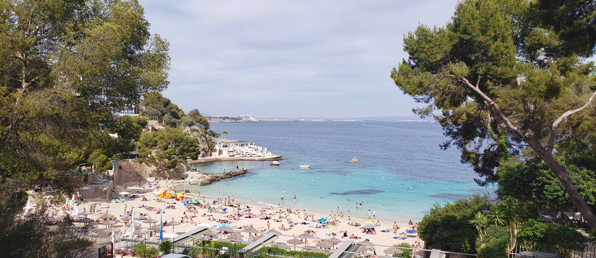 We took a taxi to Playa Illetas and it was a busy beach. That was a little disappointing but the clear cool water and soft yellow sand were as promised. Taking a taxi in Mallorca is interesting as you have to go to a taxi stand and can’t really hail one off the streets. We tried a few times but failed and had to locate a stand or catch a bus.