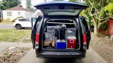 In order to bring our gear, we drove 12-hours down from Seattle to Bend, OR to Lakeview, CA then to Black Rock, NV over two days. We had to carefully “tetris” our minivan rental to fit everything —our unassembled shelter, two bikes, food, water, and all our gear.