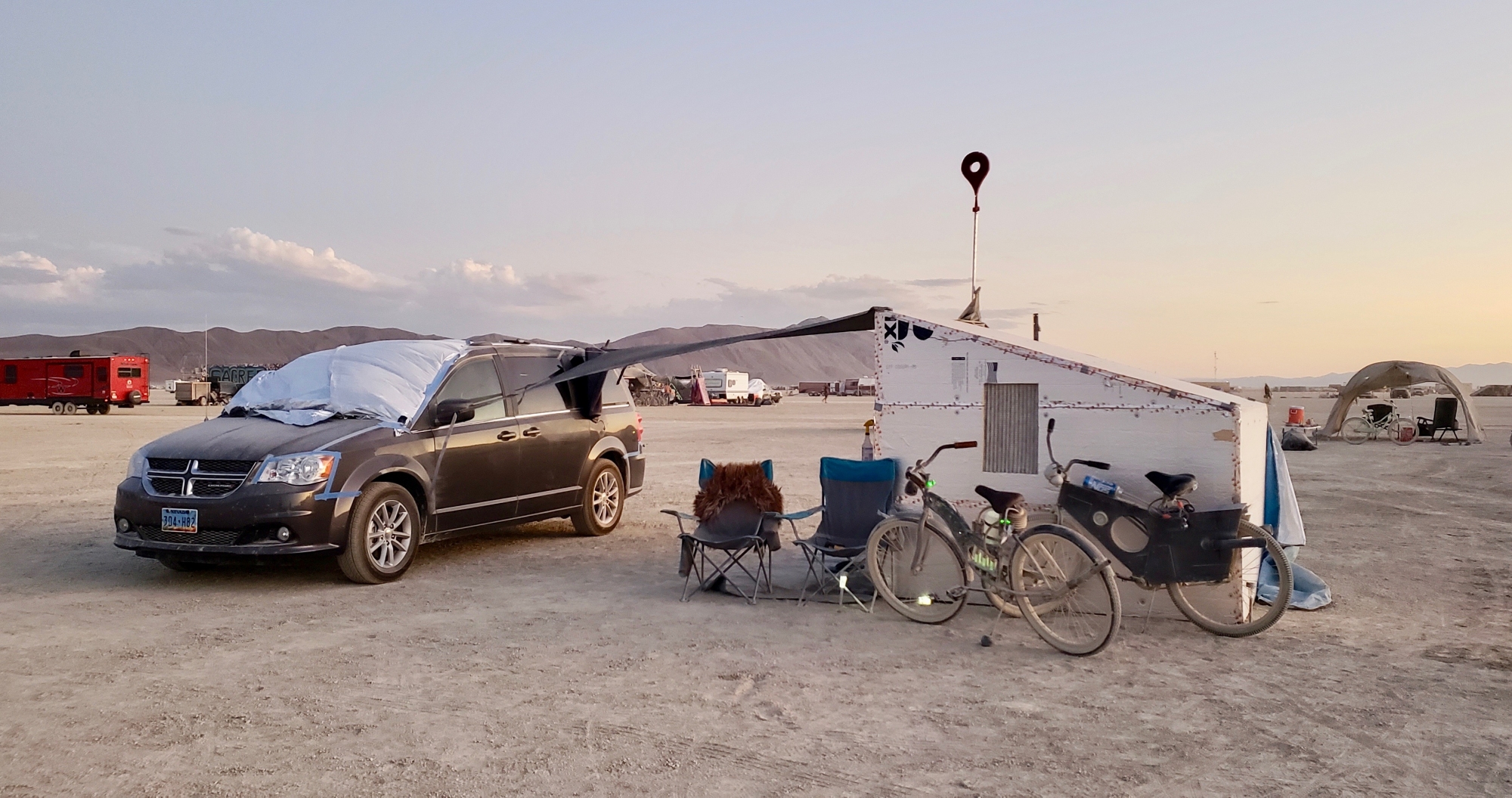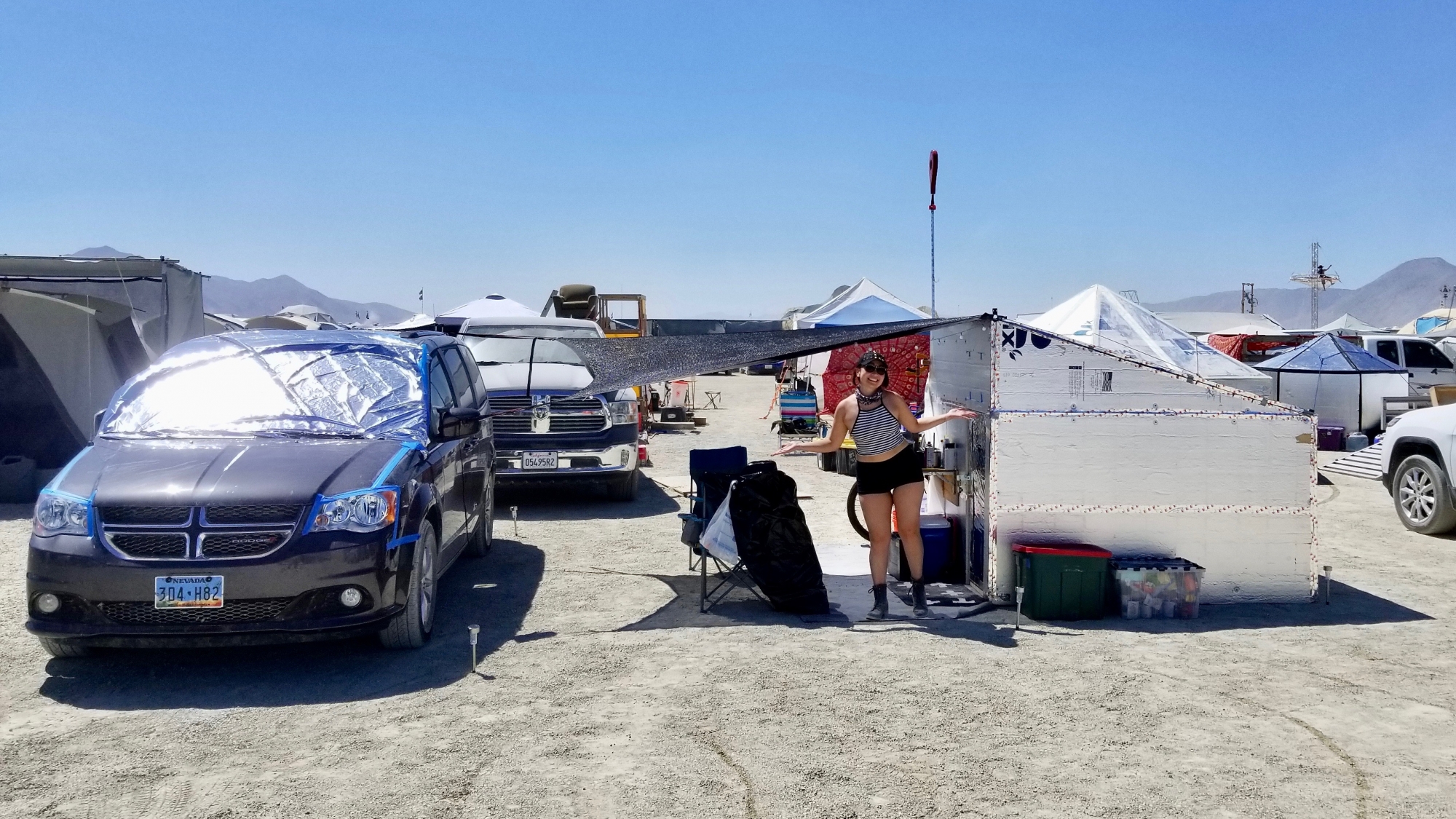 We intentionally planned an early morning arrival on Tuesday to avoid traffic and beat the heat while we set up camp. We checked in with Hushville, the village we pre-registered to camp with. It’s a quiet area to sleep at night, centrally-located and everyone operates autonomously. It was a perfect day for set up. The wind was calm and it wasn’t dusty.