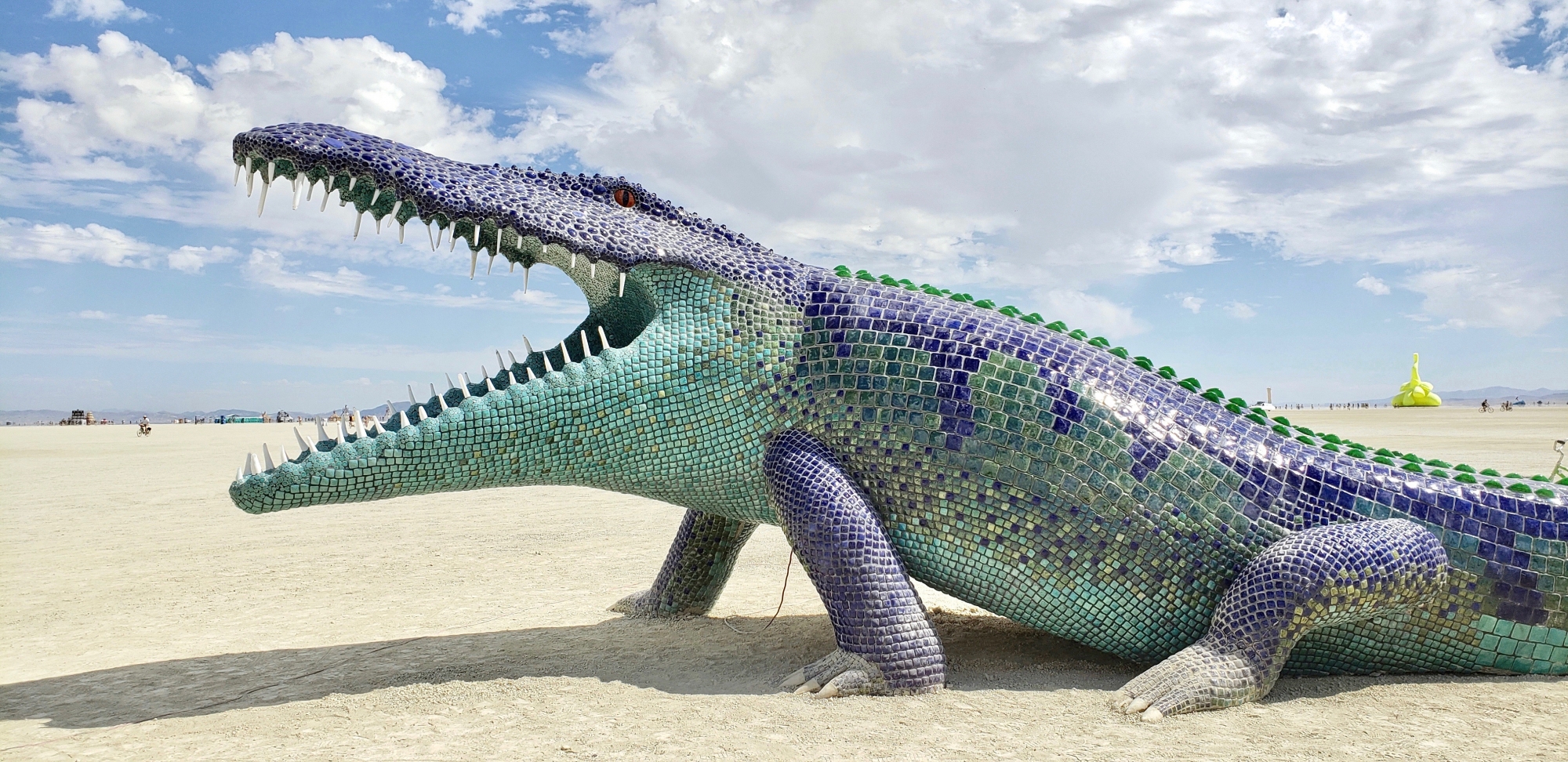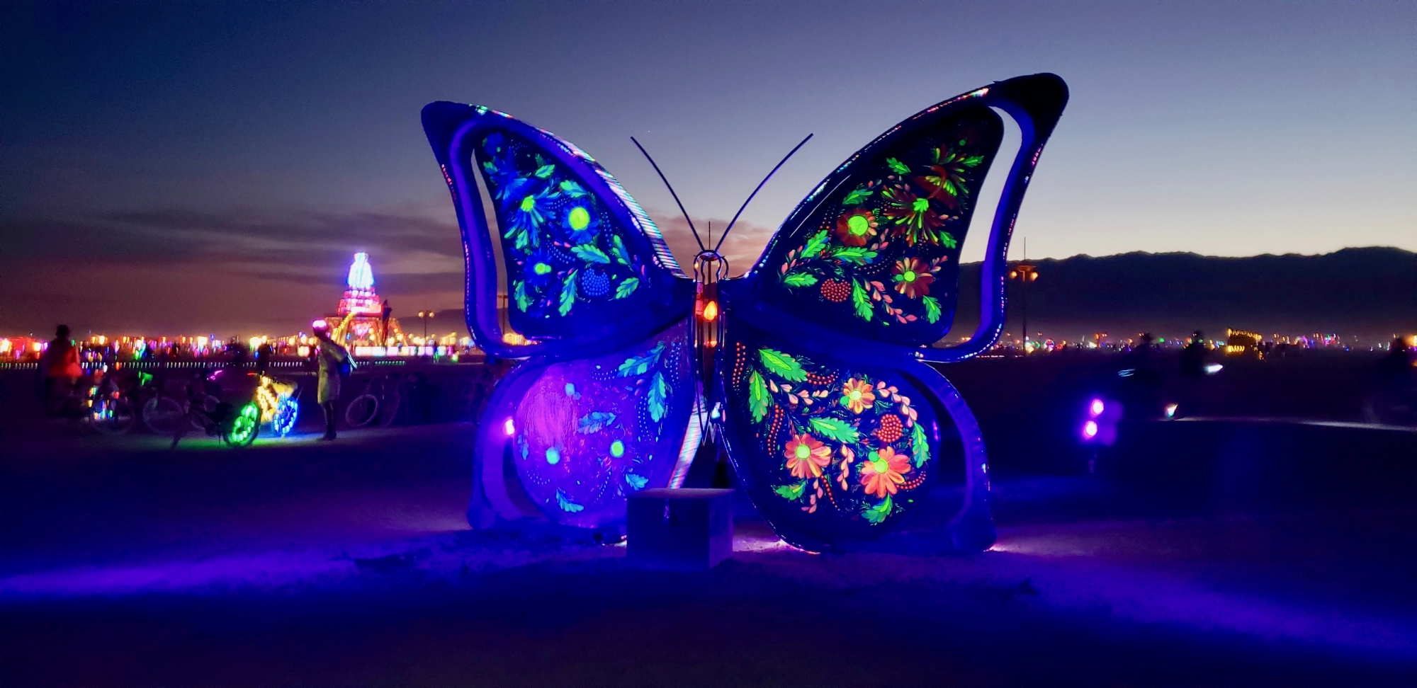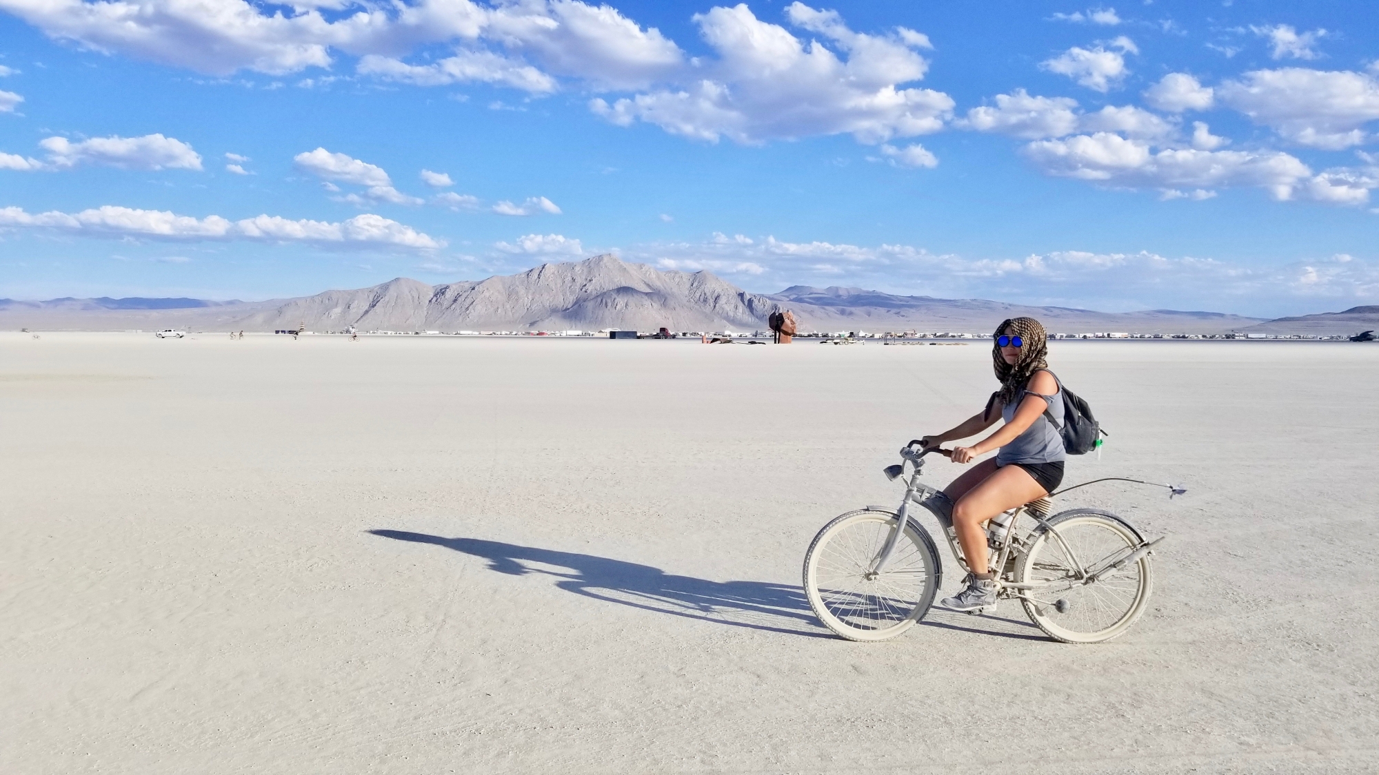 Burning Man is a temporary city that pops up annually for a week in the Nevada Black Rock desert. 80,000 people come together to participate in this unique culture and celebrate self-expression through physical art, fashion, mutant vehicles, bicycles and more.