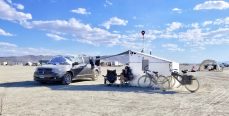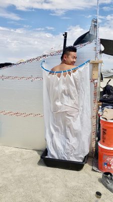 There is a lot of planning and prep in order to survive the harsh conditions of Burning Man —beating the heat, minimizing dust and ensuring things won’t blow away from strong winds. Also, for food, shelter, and water, you must bring everything in and out. There are no vendors to save you if you forget to bring something. The only thing you can buy with money is ice and coffee/tea. The rest is all based on gifting.