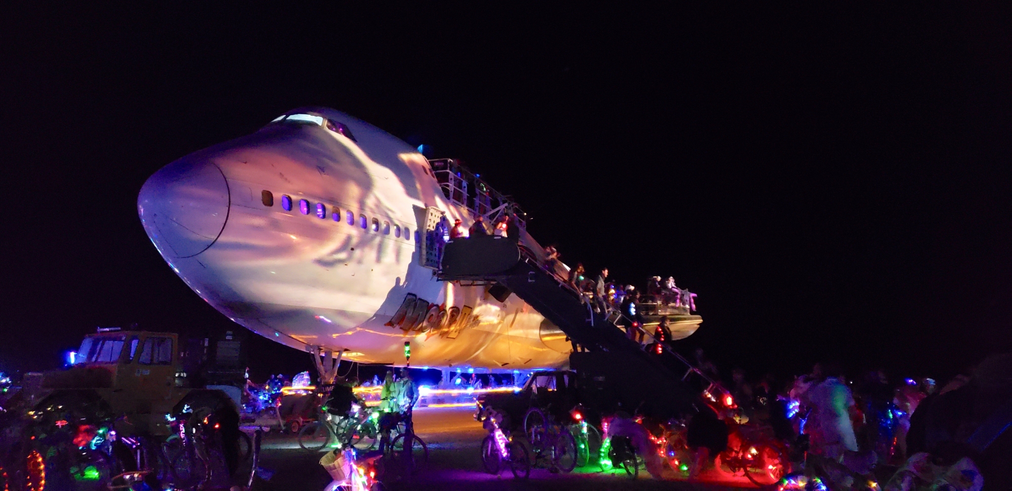 We then rode around looking for cool art including a ceiling made from fire and the famous Boeing 747 art plane. We even biked to the ‘trash fence’ which is the furthest boundary of the playa to see the scale of this city.