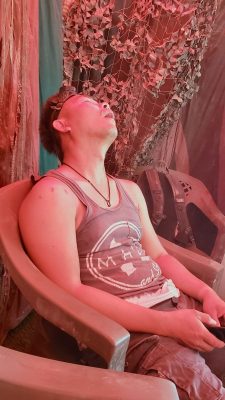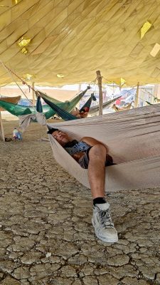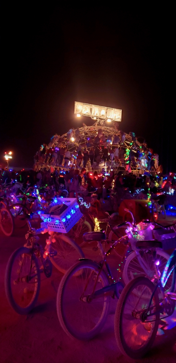 We found the famous Thunderdome, from the death guild camp. This was a space where two people who know each other can fight using a foam sword while being suspended from the dome. Yes, it was very entertaining. We ventured to see more art until our bikes got stuck together because of the cheap lock I got was too cheap and didn’t open with our keys anymore. Luckily, Chi had snips to cut it and we weren’t too far from our camp.