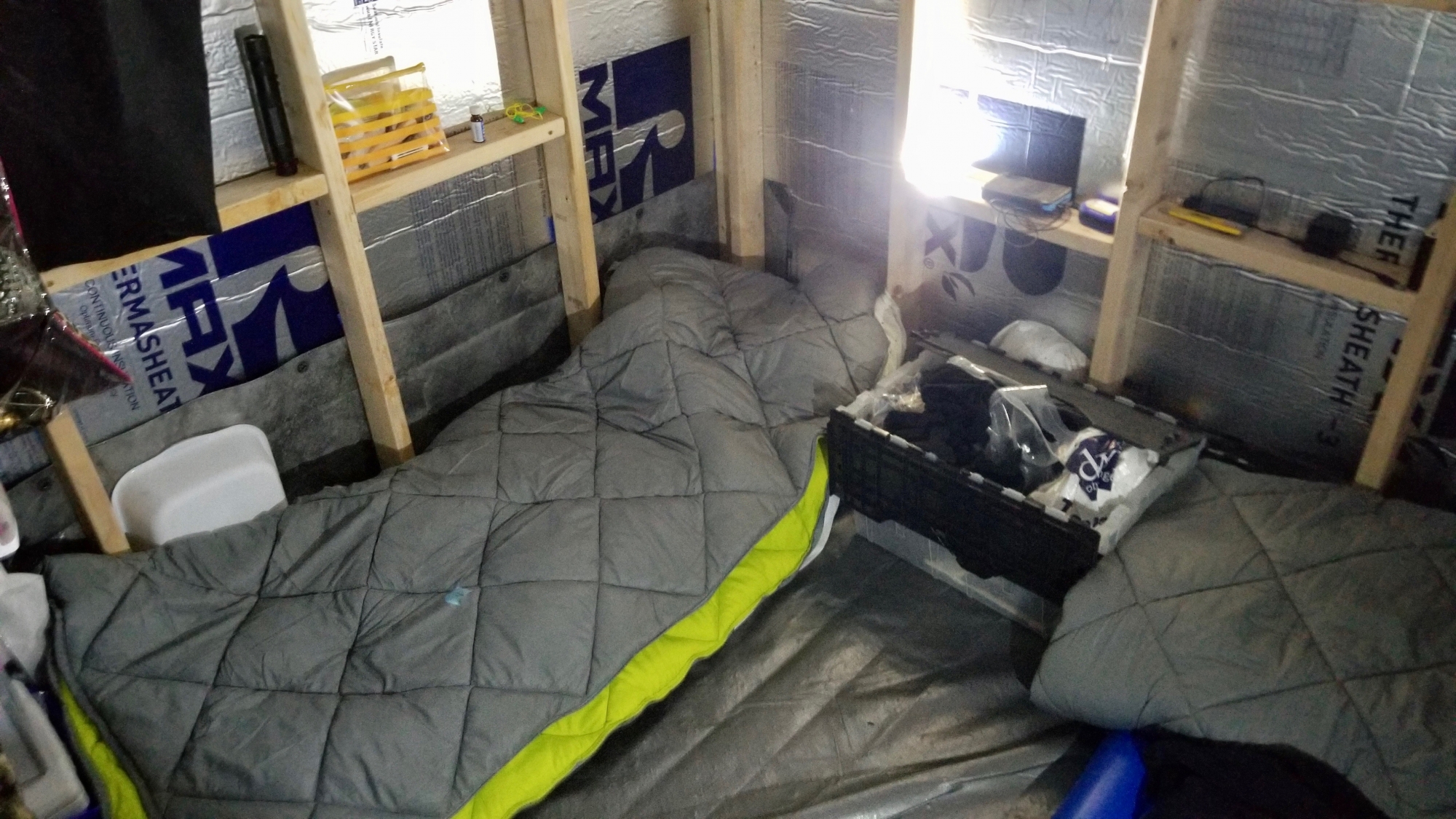 Our house was built in 2 hours. We had a quick MRE lunch, did an ice run and hibernated inside our house to test our homemade AC. It didn’t work well but I just laid there melting and feeling the effects of heat exhaustion. I was drinking a lot of water nonstop and questioned how I was going to survive this uncomfortable heat for the next 7 days… And even wondered if I made a mistake coming here.