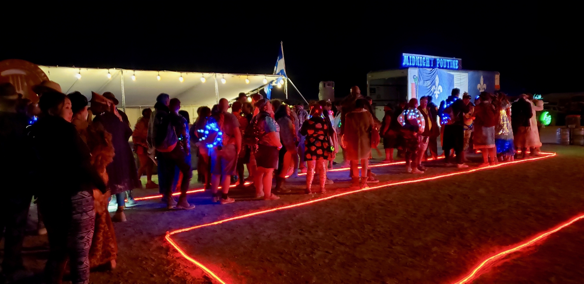 We headed out for the camp called Midnight Poutine. Yes, they were a Canadian camp from Montreal and they gifted poutine. Legit Poutine… with freshly cut hand-cut potatoes, squeaky cheese, and warm gravy. While we waited for 30 minutes, it definitely hit the spot.