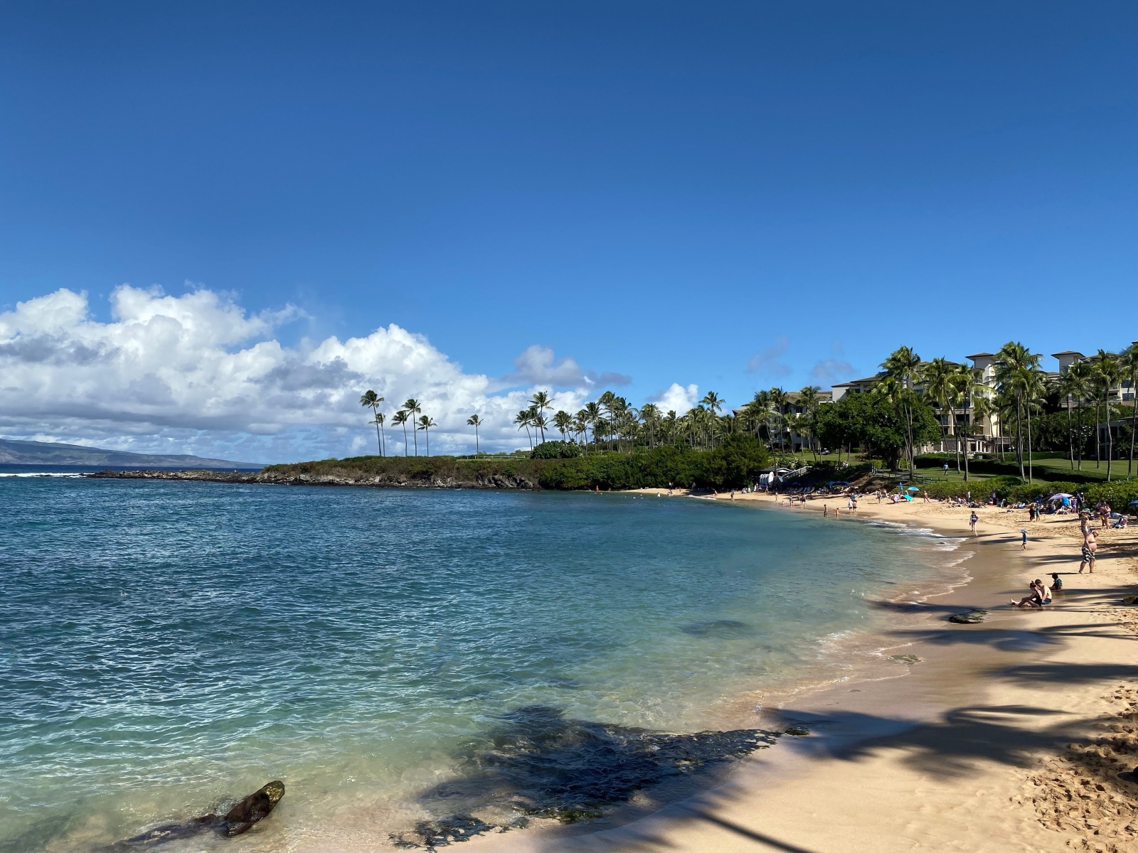 We went to Kapalua Beach next and this was a beautiful bay to snorkel. We even saw our first turtle swimming near the beach! It was huge compared to the one we saw in Seychelles; about 2 feet long.
