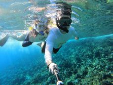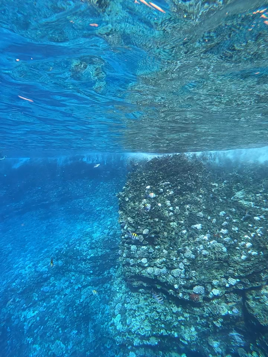 Our second stop was outside of the crater. While there was less fish here, I had never seen a wall of coral-like this. You can also stare into the depths of the ocean. It was eerie but also stunning.