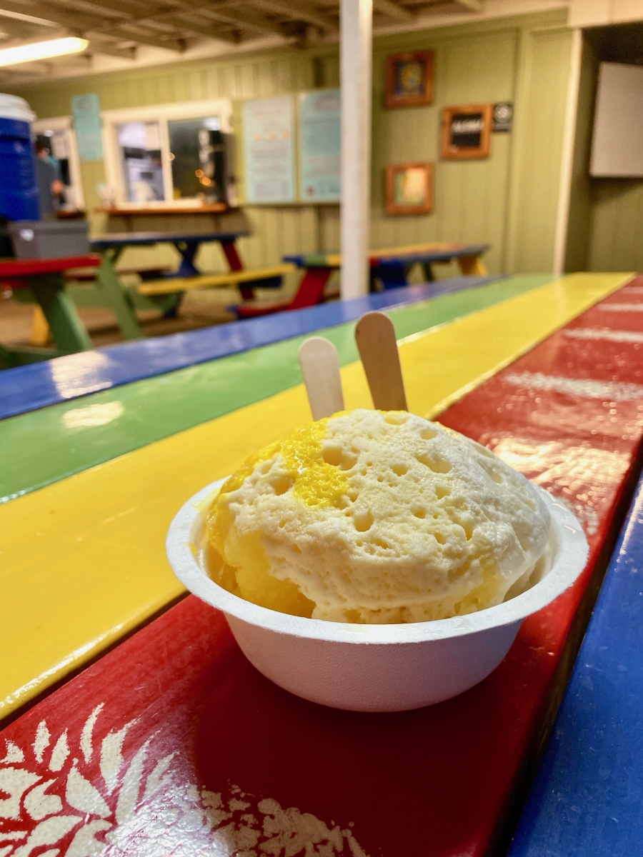 We enjoyed our first Hawaiian meal at Da Kitchen. This restaurant served massive portions and offered lots of options. We ate their signature Kalbi ribs and deep-fried spam musubi. But I loved their dole whip the most –pineapple soft serve ice cream in sweet pineapple juice and whipped cream.