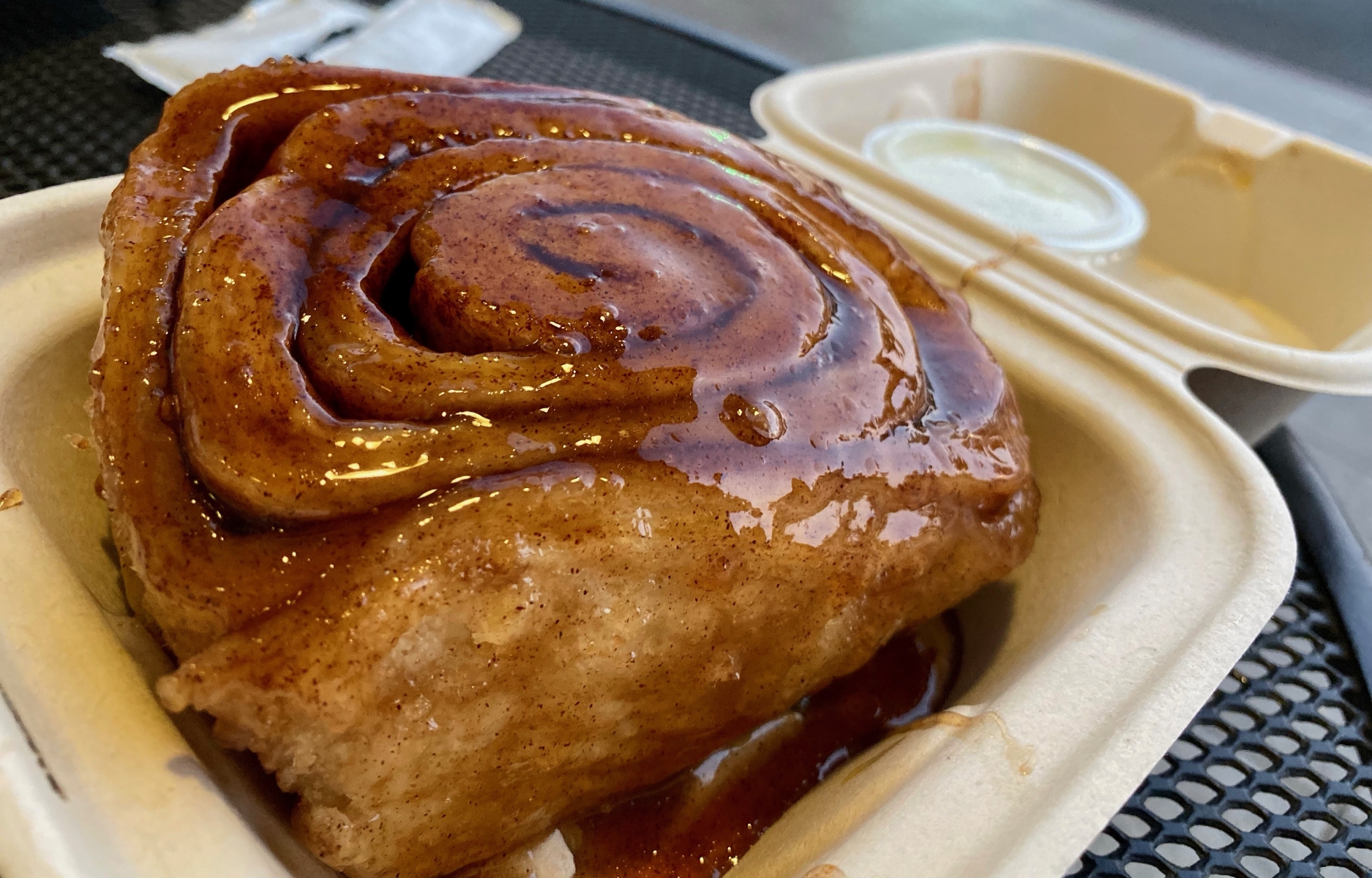 Early morning, I dragged Chi out to get a cinnamon bun from the Cinnamon Roll Place. As recommended by a friend, I could never refuse a good cinnamon bun. The bun was soft and covered in a gooey caramel glaze. A perfect start to my day.