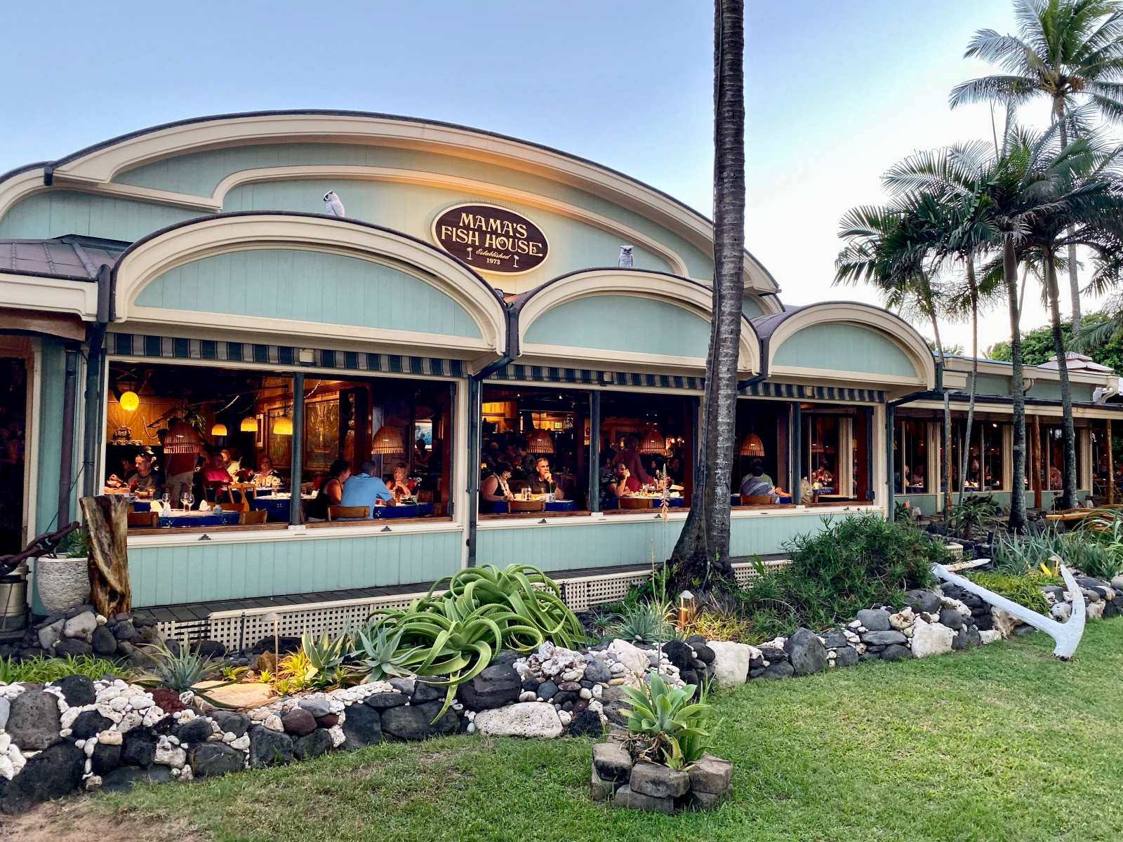 For dinner, we headed to Mama’s Fish House. This restaurant was highly recommended and reviewed on travel blogs and websites. I was skeptical but it lived up to its reputation and was truly the best seafood restaurant I’ve ever had. First, the restaurant was situated on a gorgeous beach-front with palm trees. The atmosphere was Polynesian and tiki decorated with impressive tropical flower bouquets.