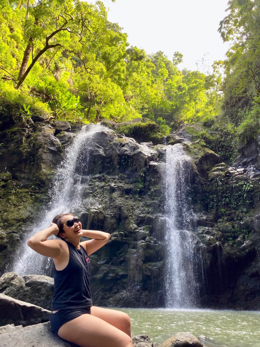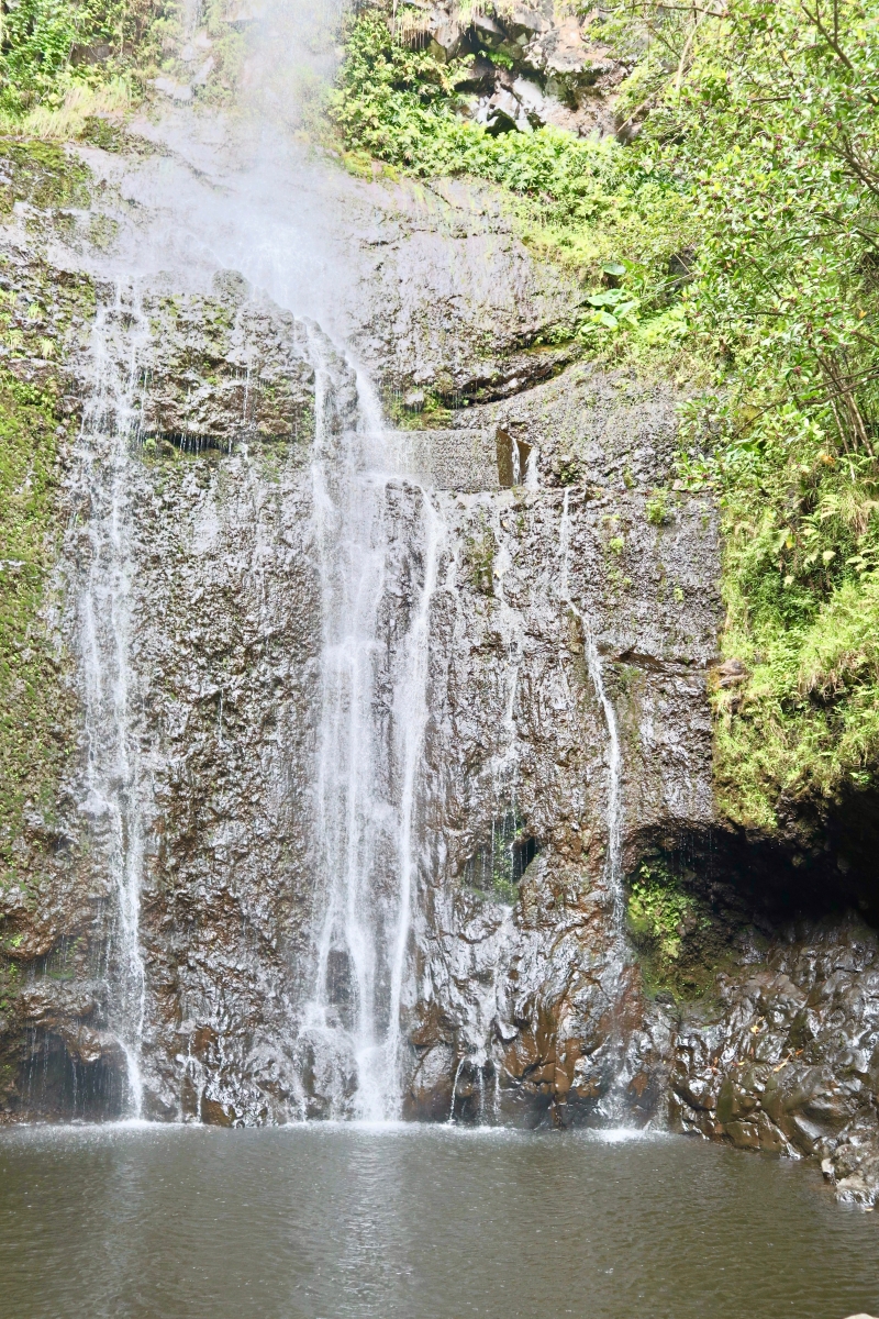 Next, we stopped at Upper Waikani Falls and completed a short hike to get up close. Standing at the foot of the three falls, the mist was refreshing on this hot humid day.