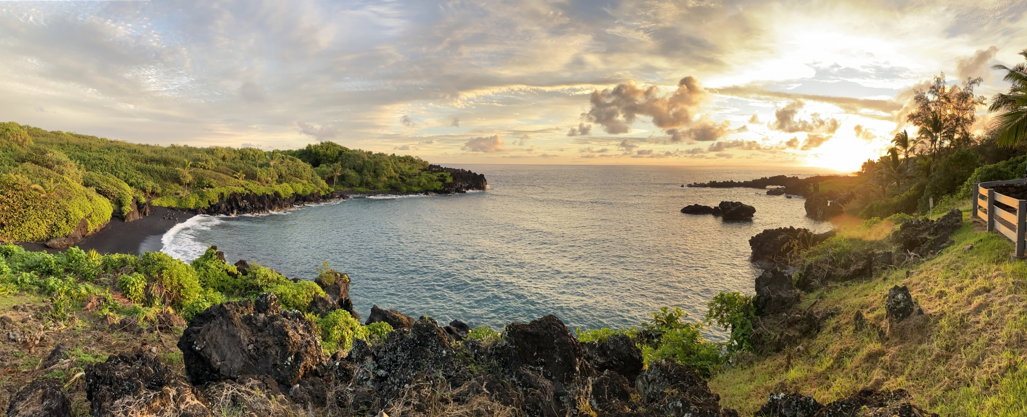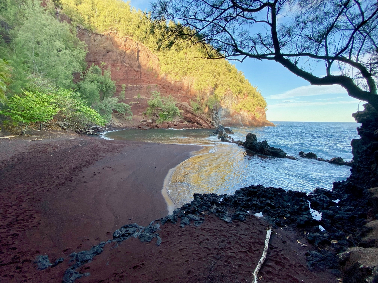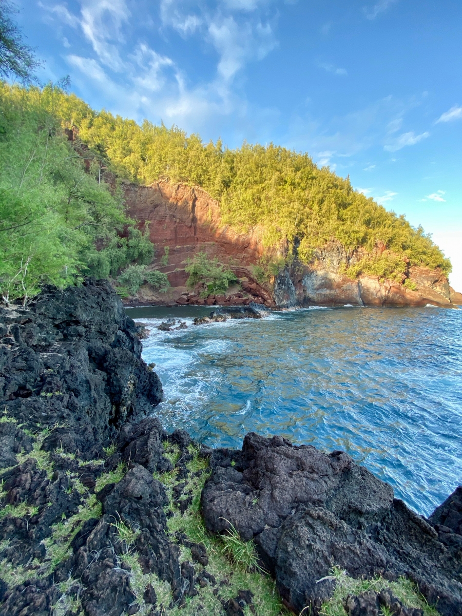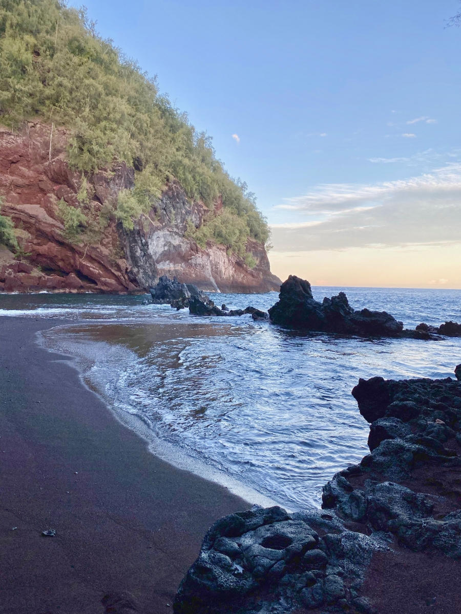 The sand was red as expected but the water was surprisingly calm and shallow for swimming due to a natural rock barrier. With minimal tourists to share this beach with, we watched the sky change colors as the sunset. This was one of my top highlights on the road to Hana —a spot most daytrippers skip due to limited timing.